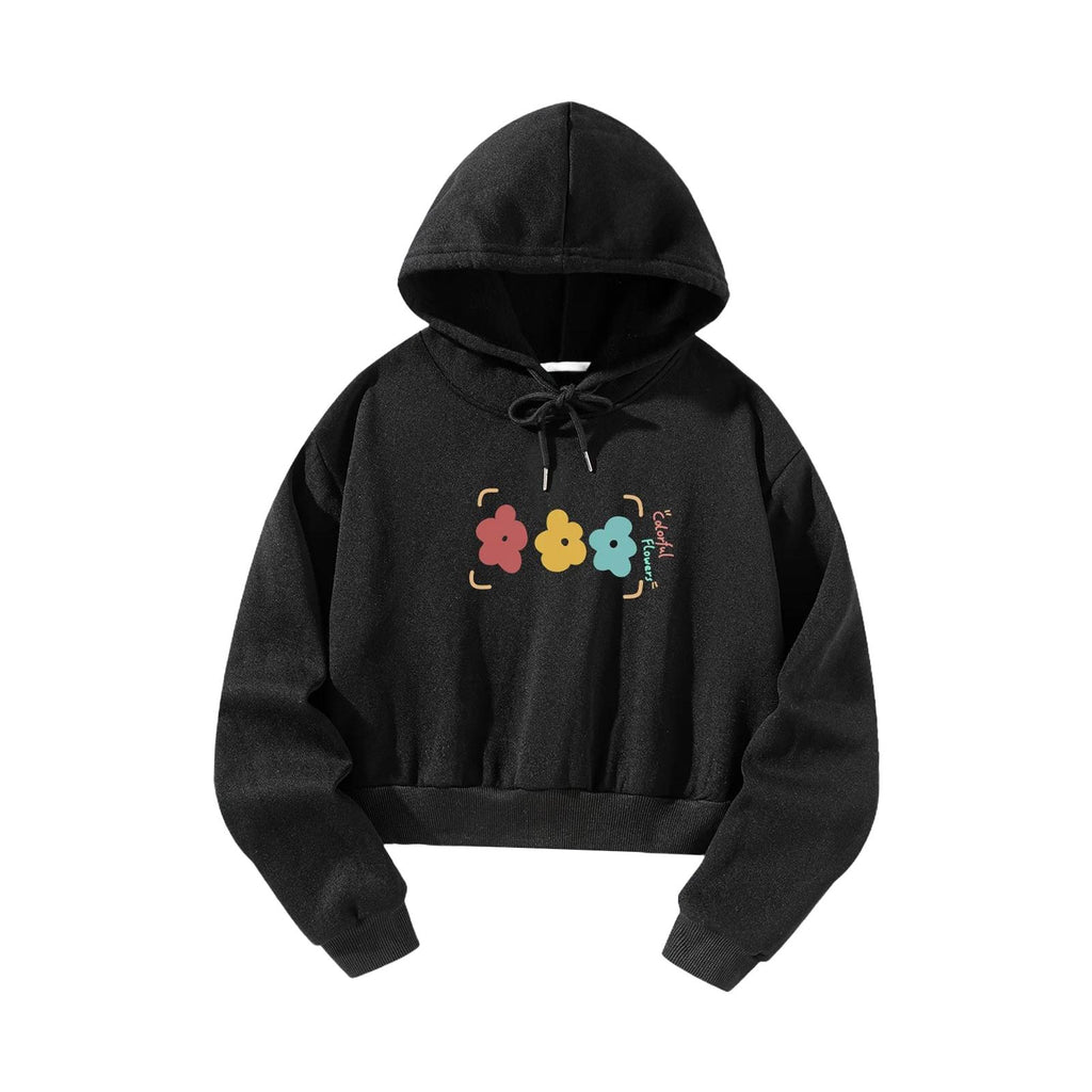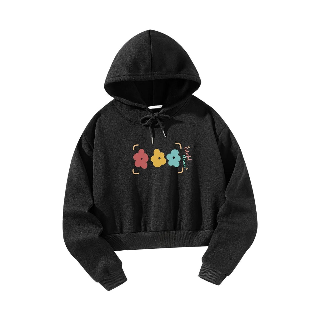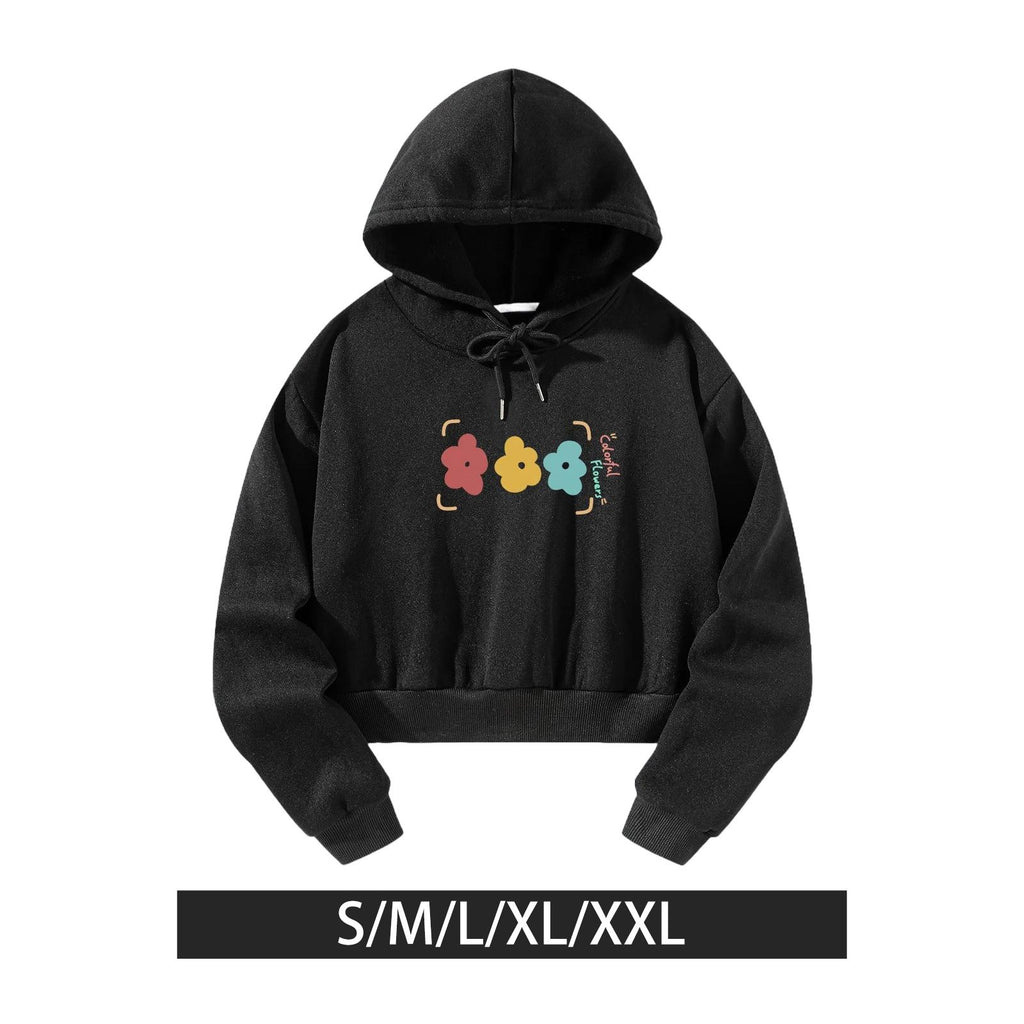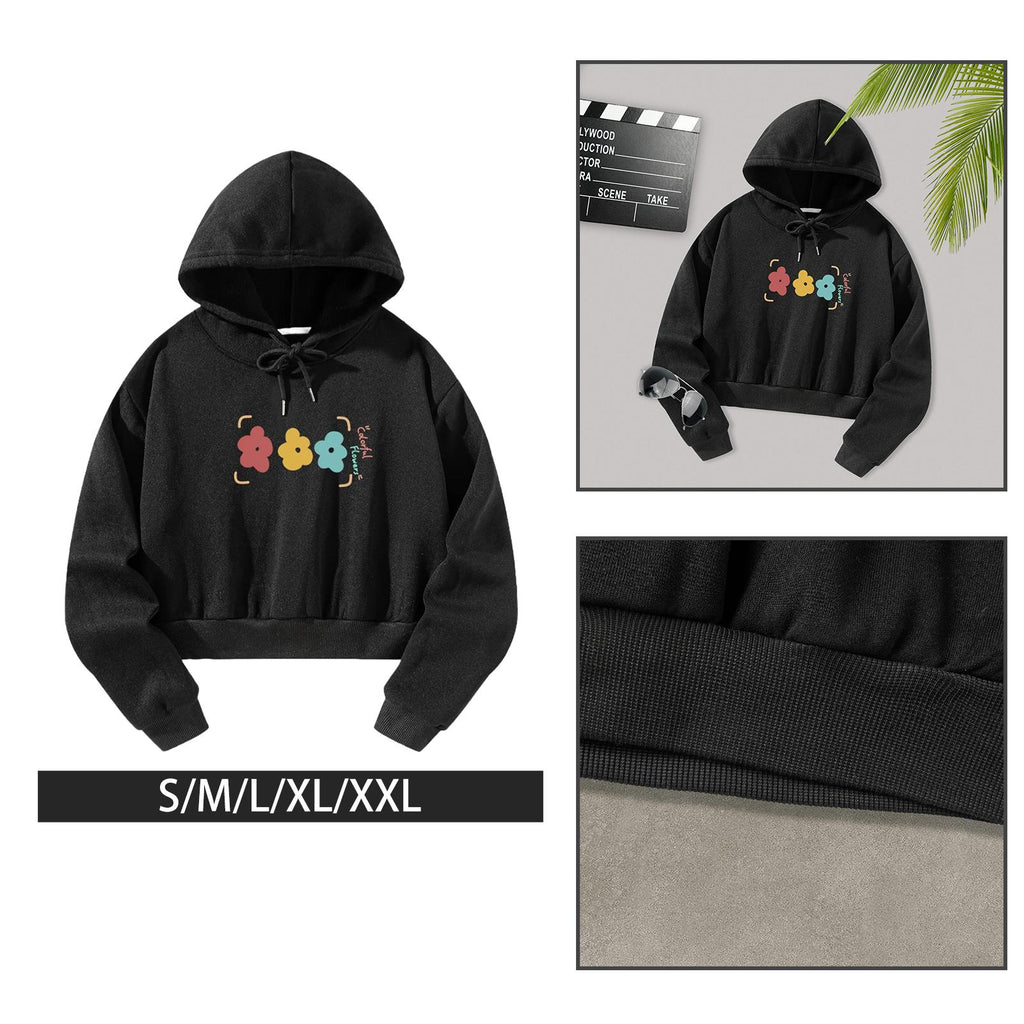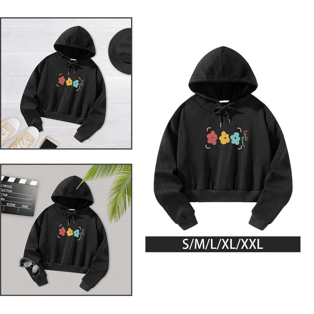 Maxbell Womens Crop Top Hoodie Sweatshirt Activewear for Fishing Work Shopping S Black