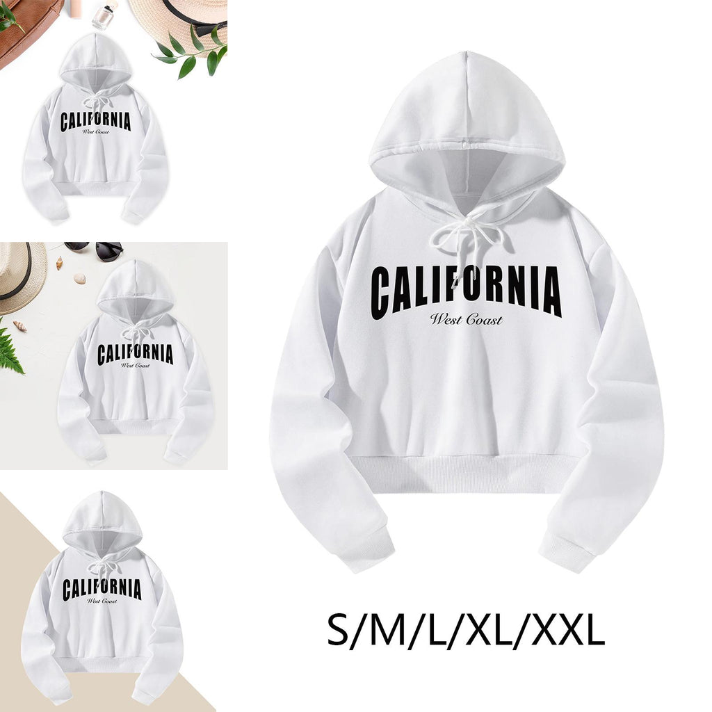 Maxbell Womens Hoodie Sweatshirt Letter Printed Outfit Fashionable Drawstring Hoodie S