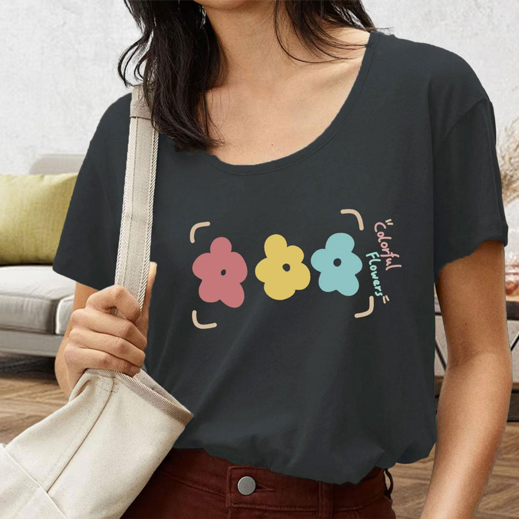【Versatile Match】: Short sleeved T shirt with round neck and flower printed design, can be easily paired with your favorite jeans or shorts to create a chic look.
