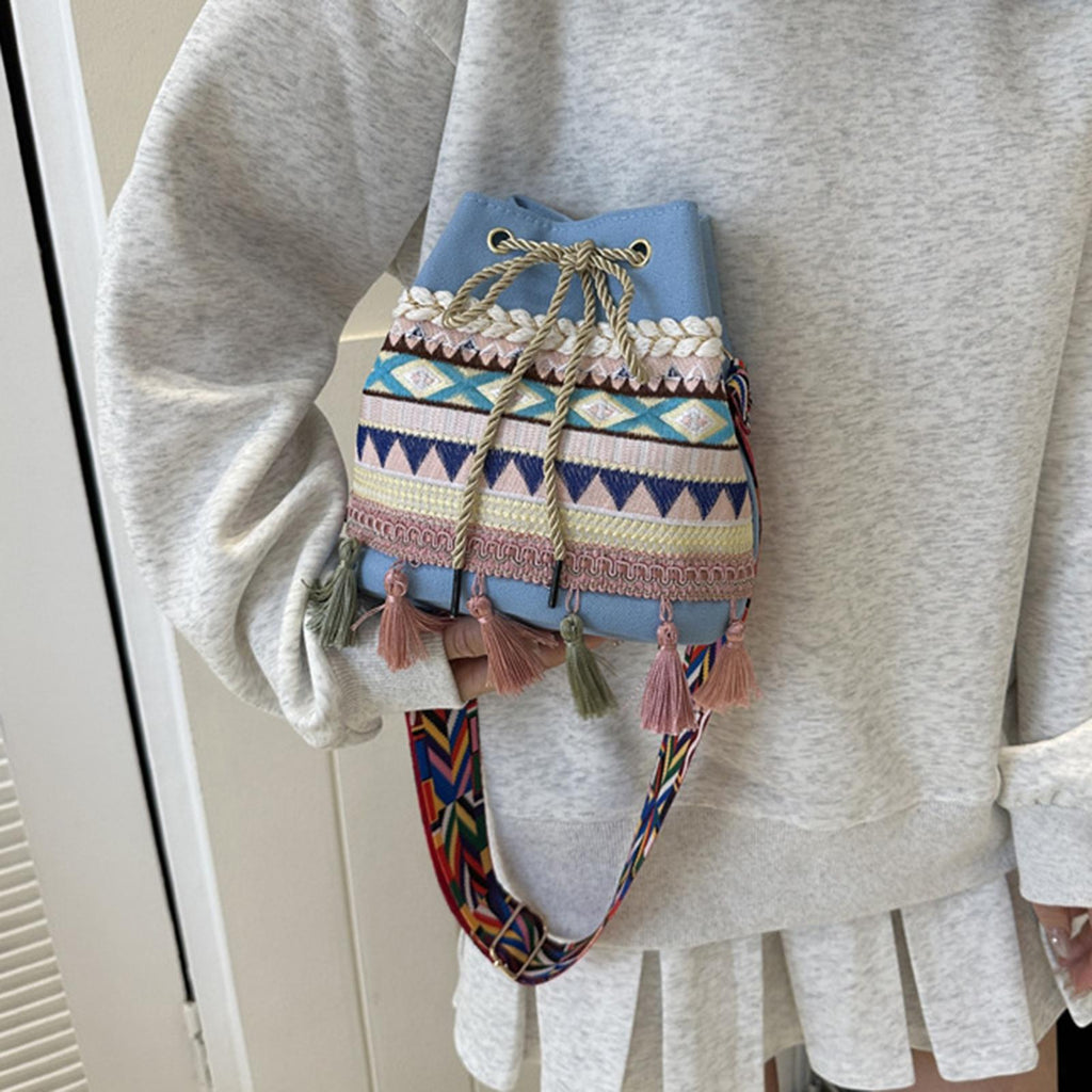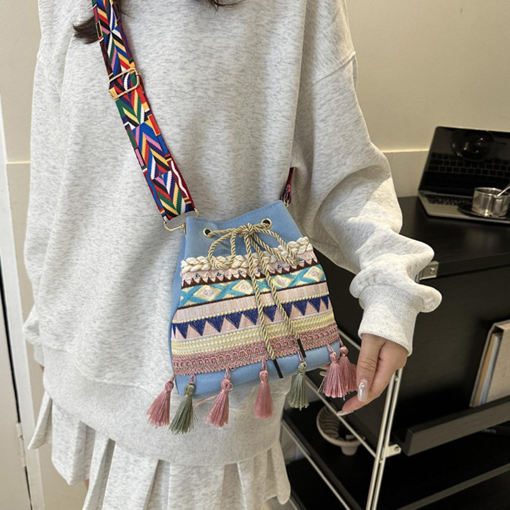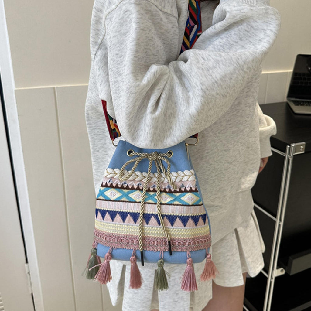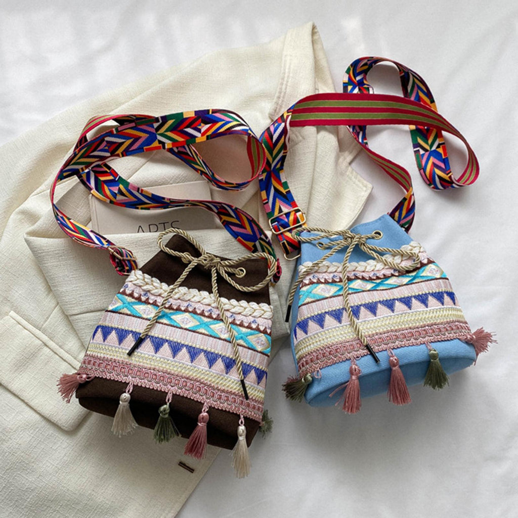 【Fashionable Design】: The bag boasts a trendy design with tassels and ethnic elements, making it a perfect accessory for any fashion forward individual.