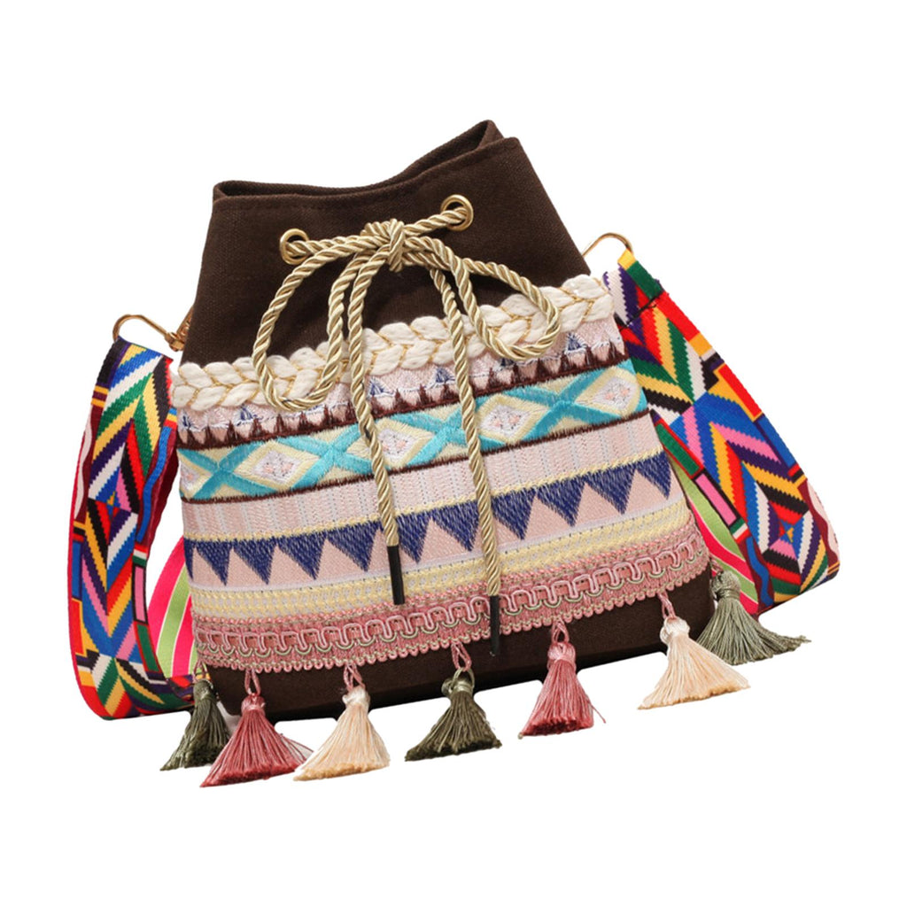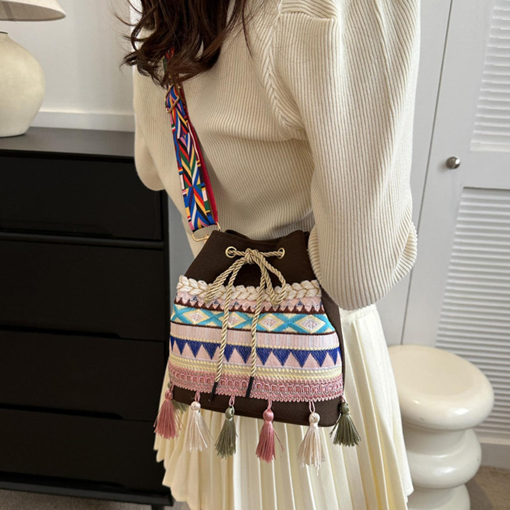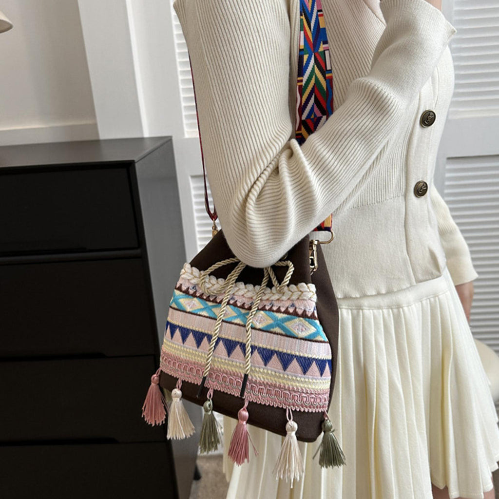【Fashionable Design】: The bag boasts a trendy design with tassels and ethnic elements, making it a perfect accessory for any fashion forward individual.
