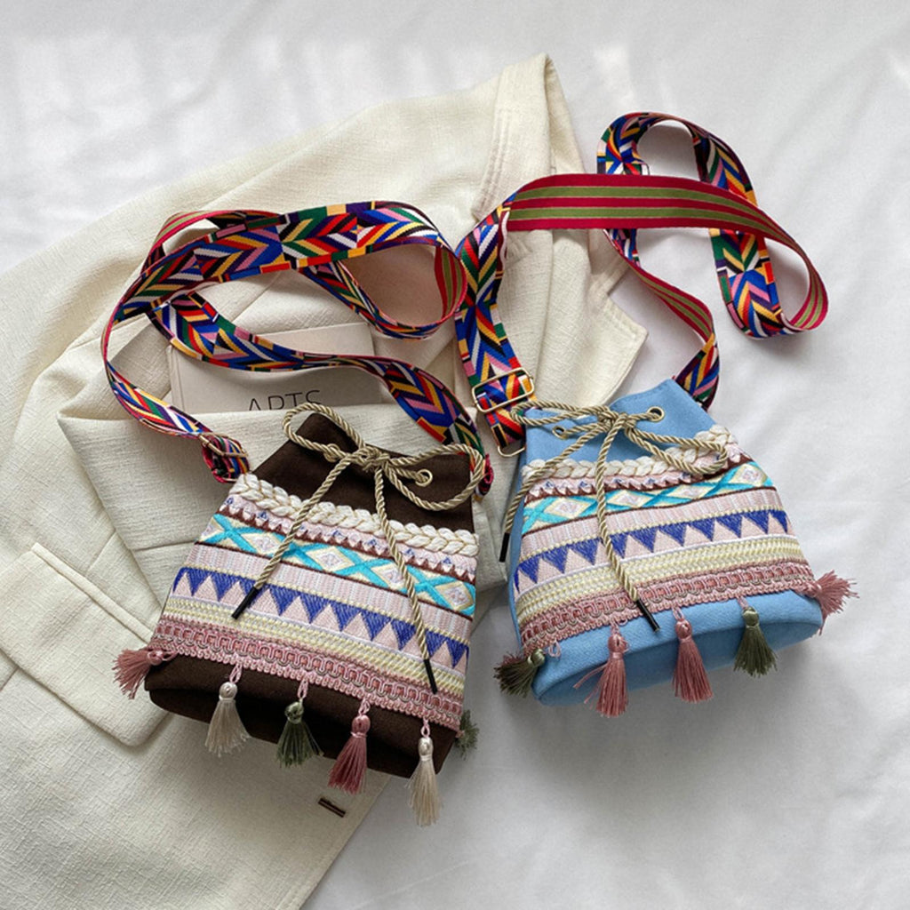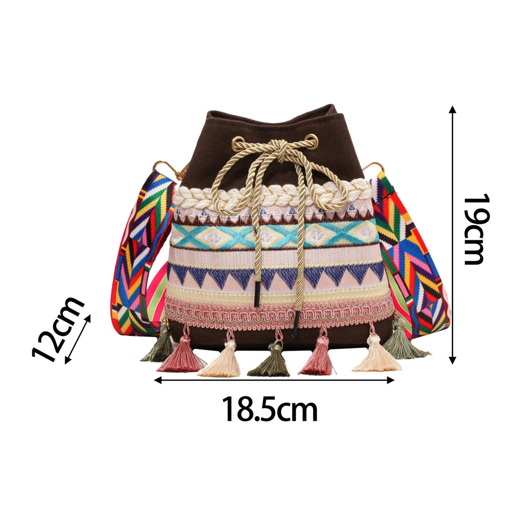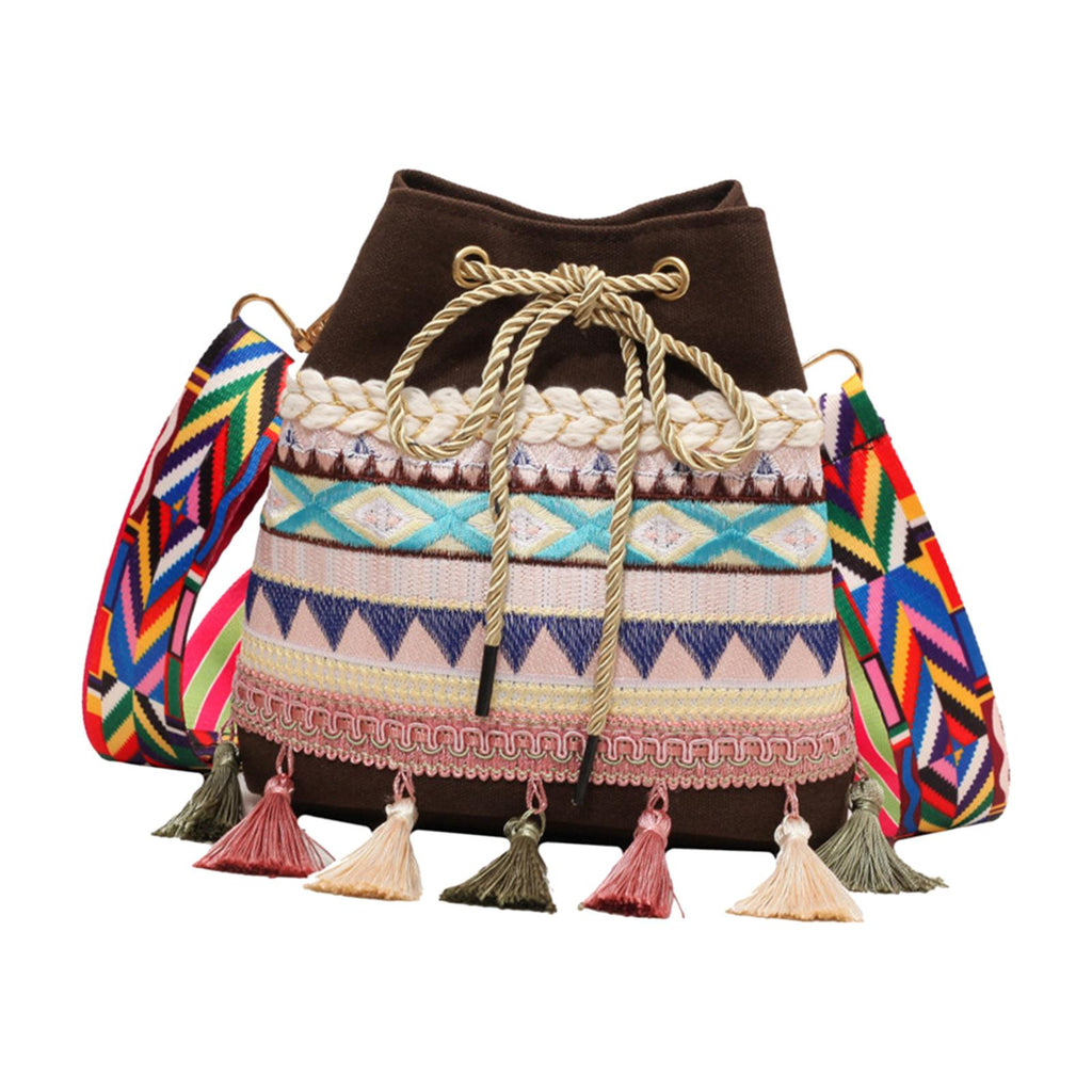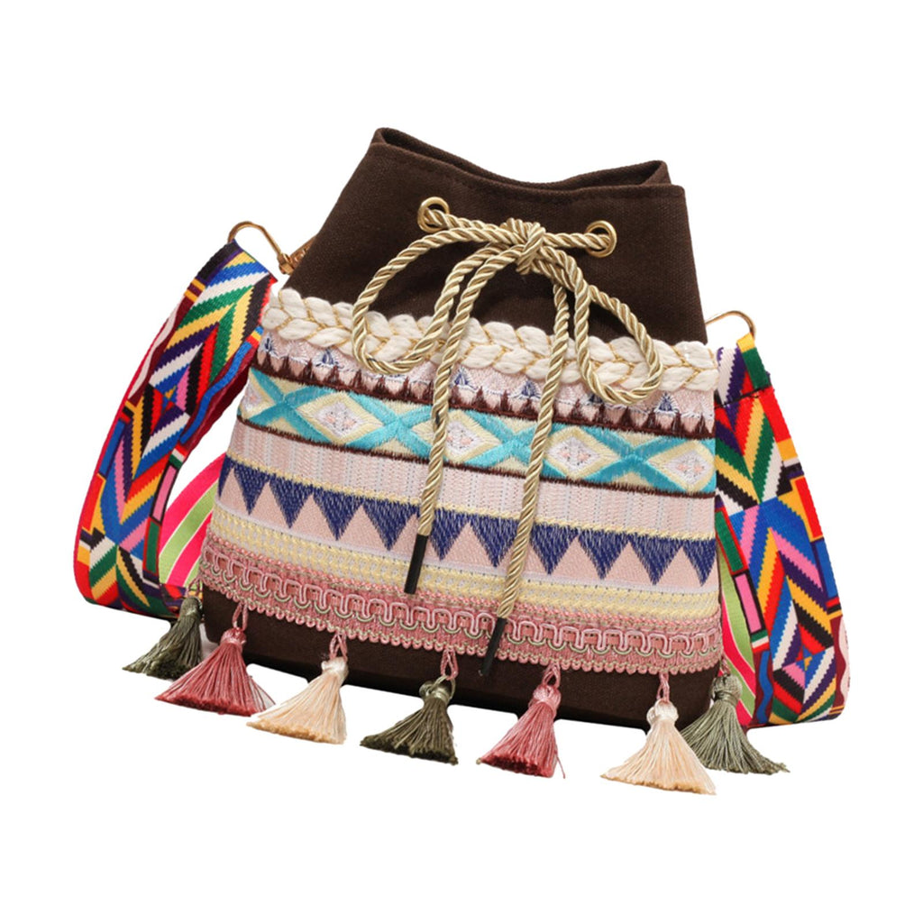 【Fashionable Design】: The bag boasts a trendy design with tassels and ethnic elements, making it a perfect accessory for any fashion forward individual.