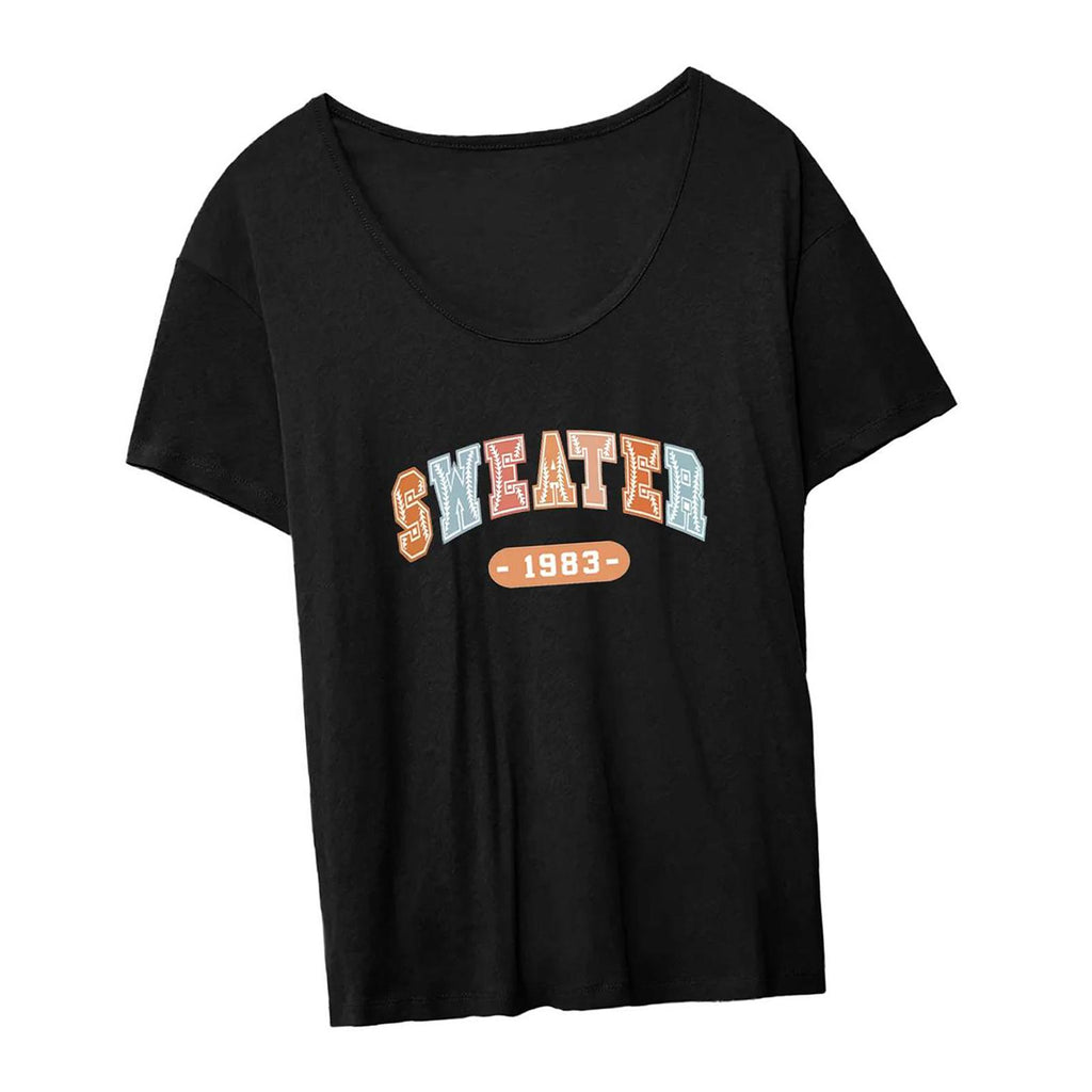 【Print & Color】: This T shirt for women comes in an elegant black color with letter printing that adds to its overall appeal.