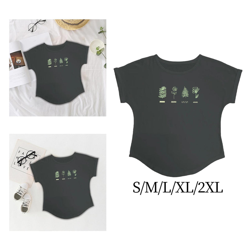 Maxbell Womens T Shirt Stylish Plants Pattern Soft Comfortable Short Sleeve Top