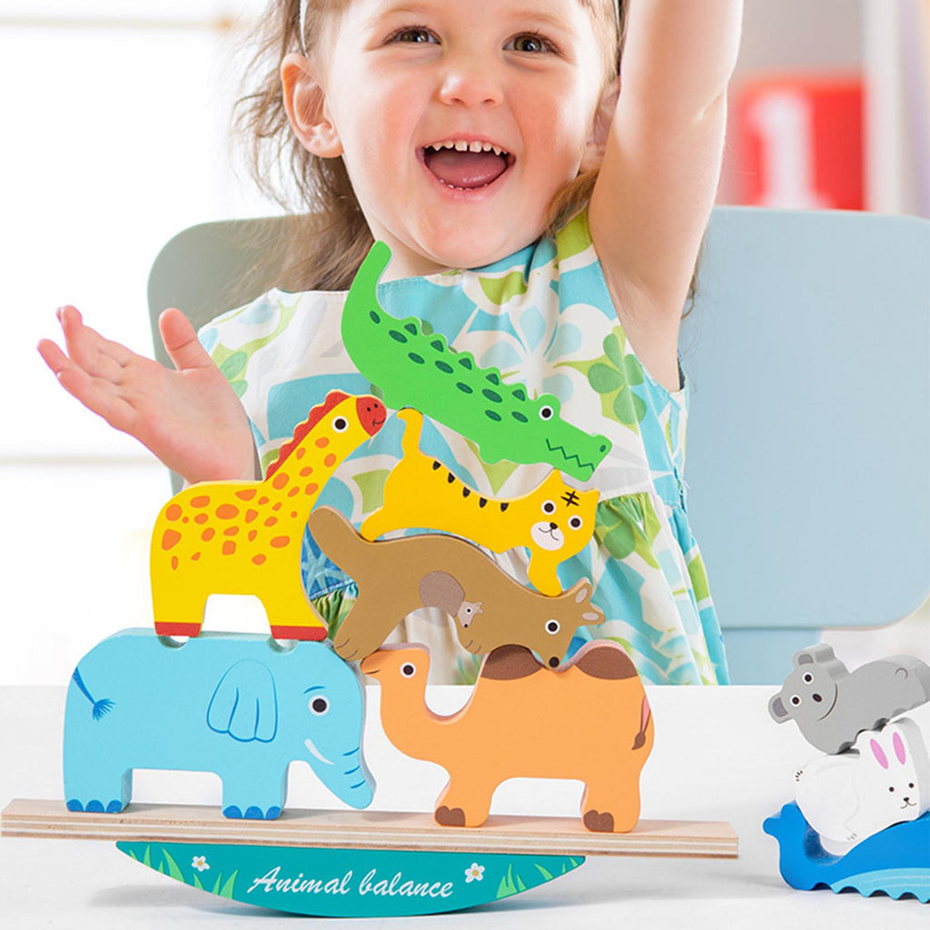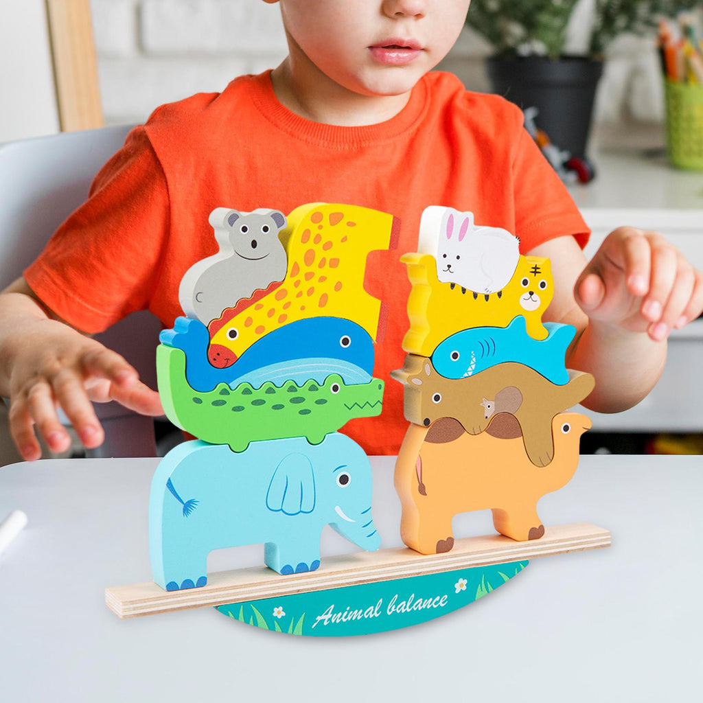 Maxbell Wood Blocks Balance Game Recognition Toy Educational Toy Wooden Stacking Toy