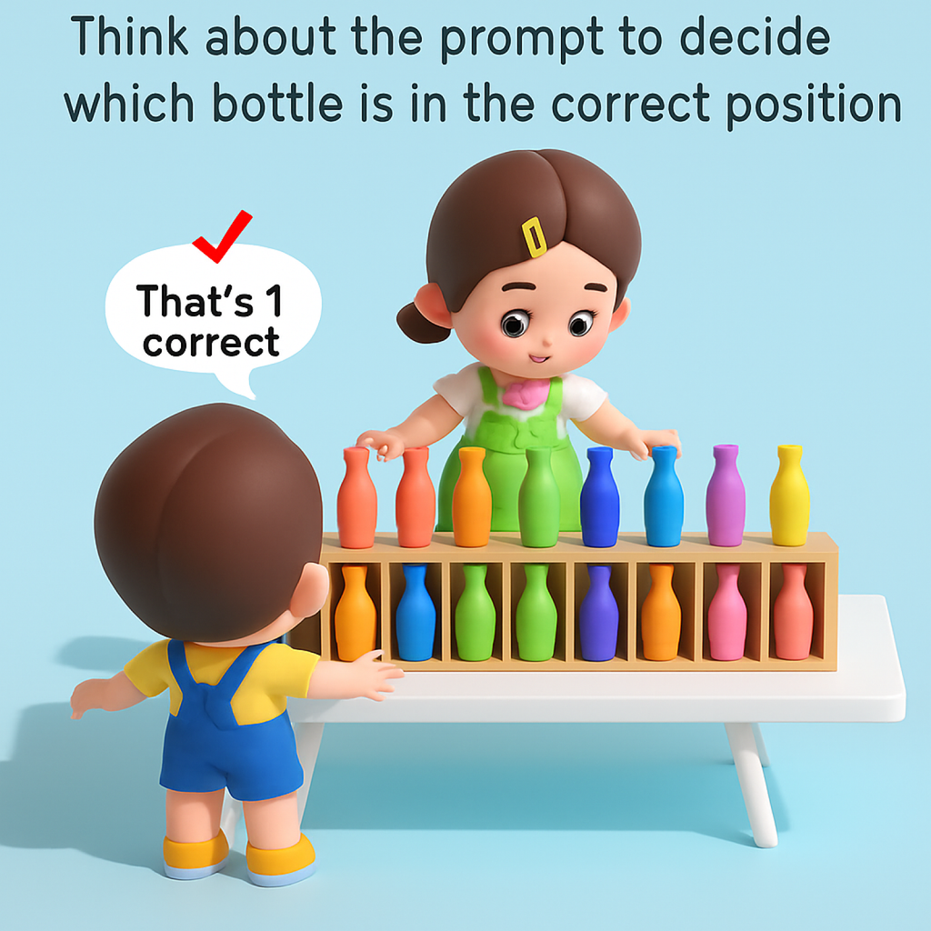 【Wood Material】Children Toy for Family Bottle Color Match Game is made of wood material, lightweight and sturdy structure