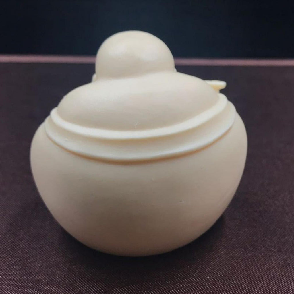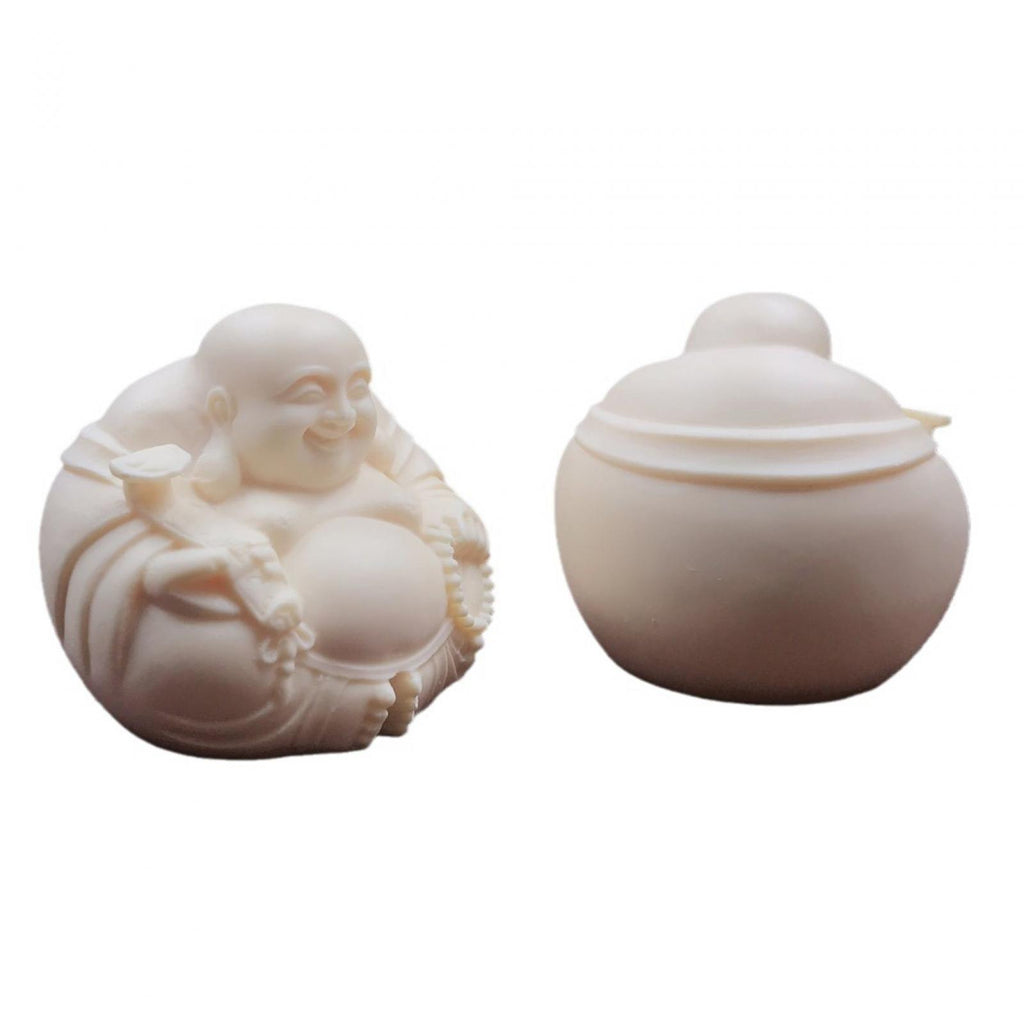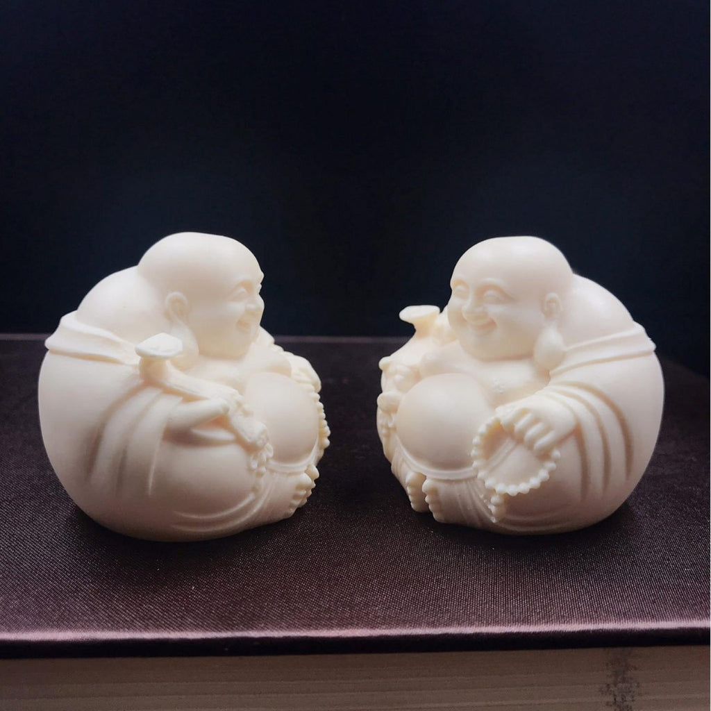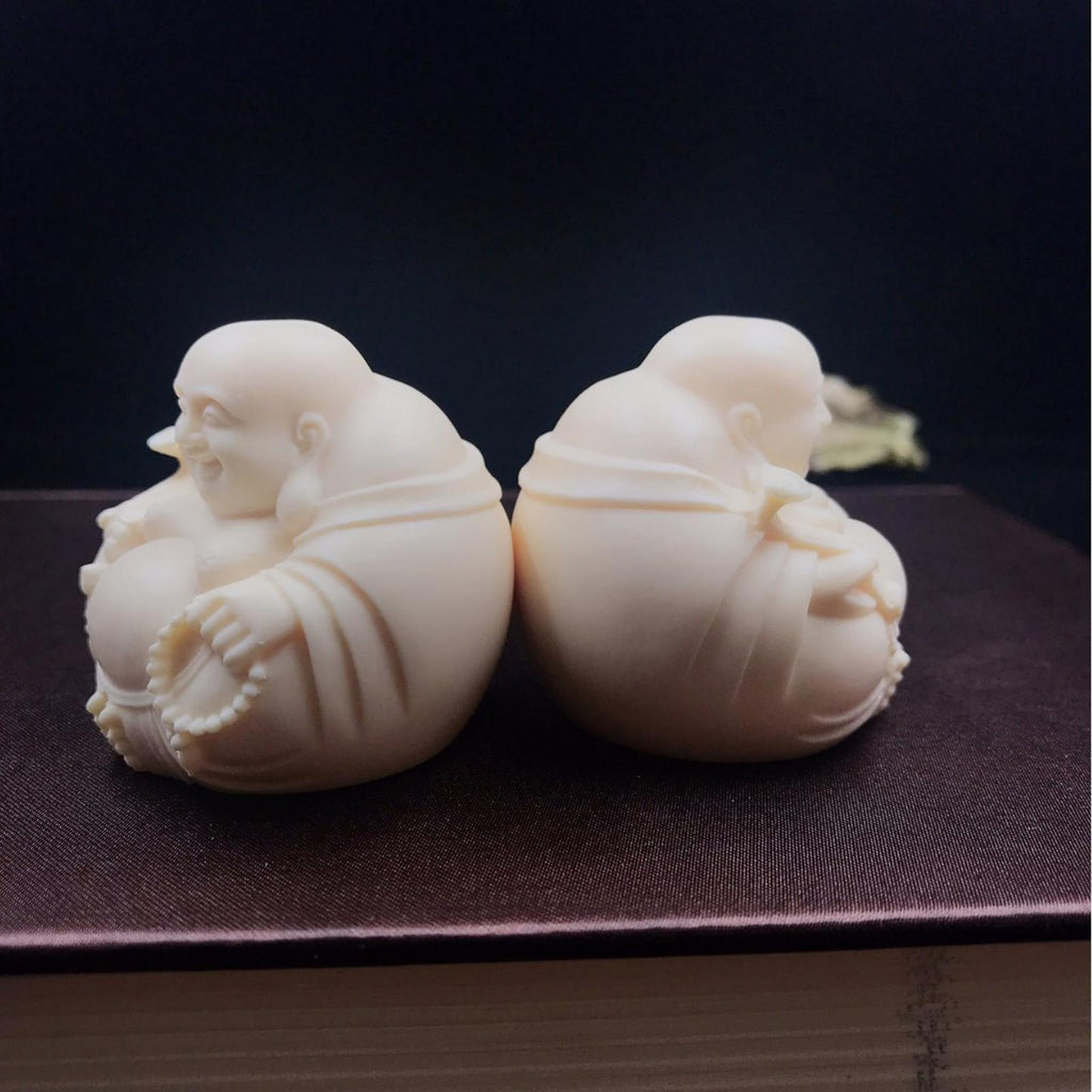 【Wood Material】Mini Maitreya Figurine is handmade from wood, lightweight, white color, which looks lifelike and vivid
