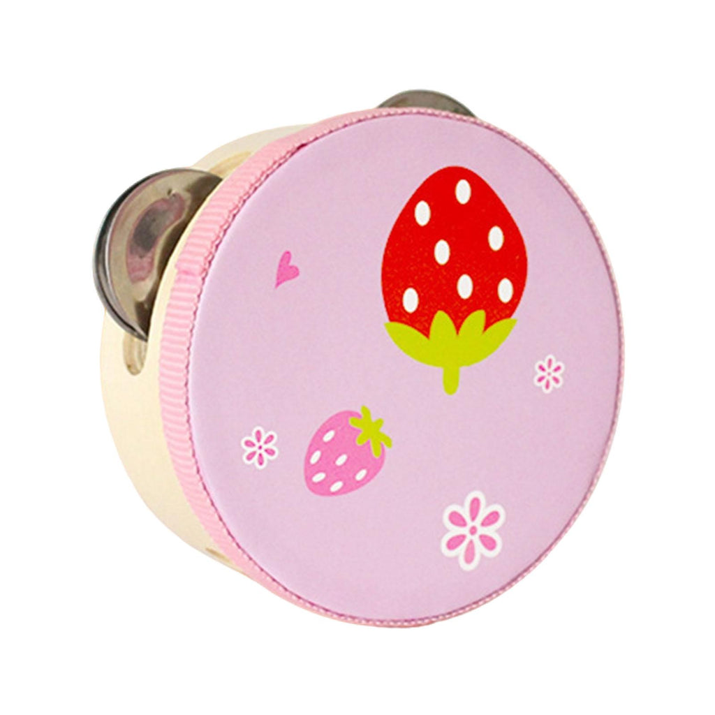 Maxbell Wood Handheld Tambourines Handbell Educational Toy for Dancing Game Toys KTV 10cm Strawberry