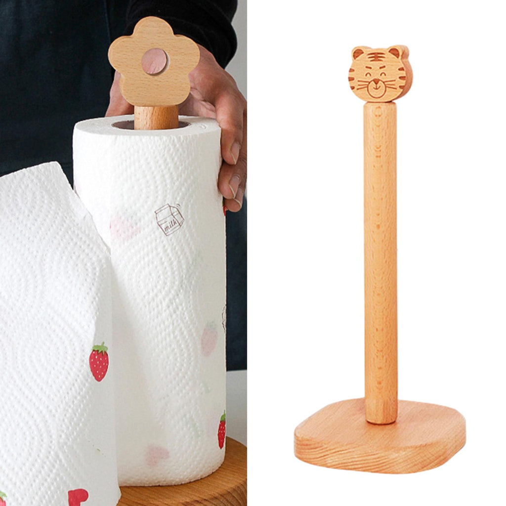 【Suitable for Various Scenes】: countertop wooden paper roll holder perfect for use in the kitchen, office, bathroom, countertop etc., it's suitable for roll paper, cling film, fresh keeping bag, roll tube cleaning cloth and hair bands.