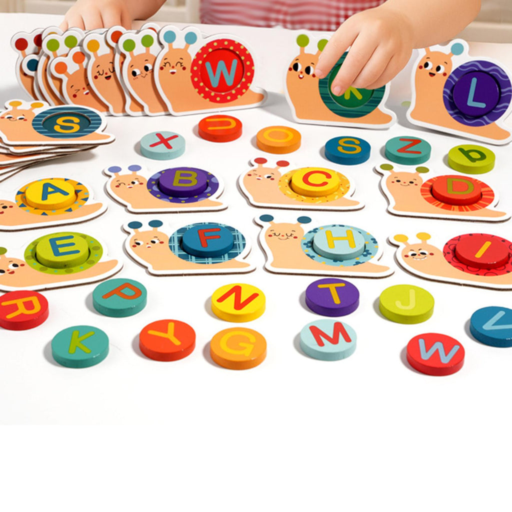 【Easy to play】Matching Game Toy, Each chunky letter fits into corresponding slots on snail shaped cards, boosting coordination and problem solving skills