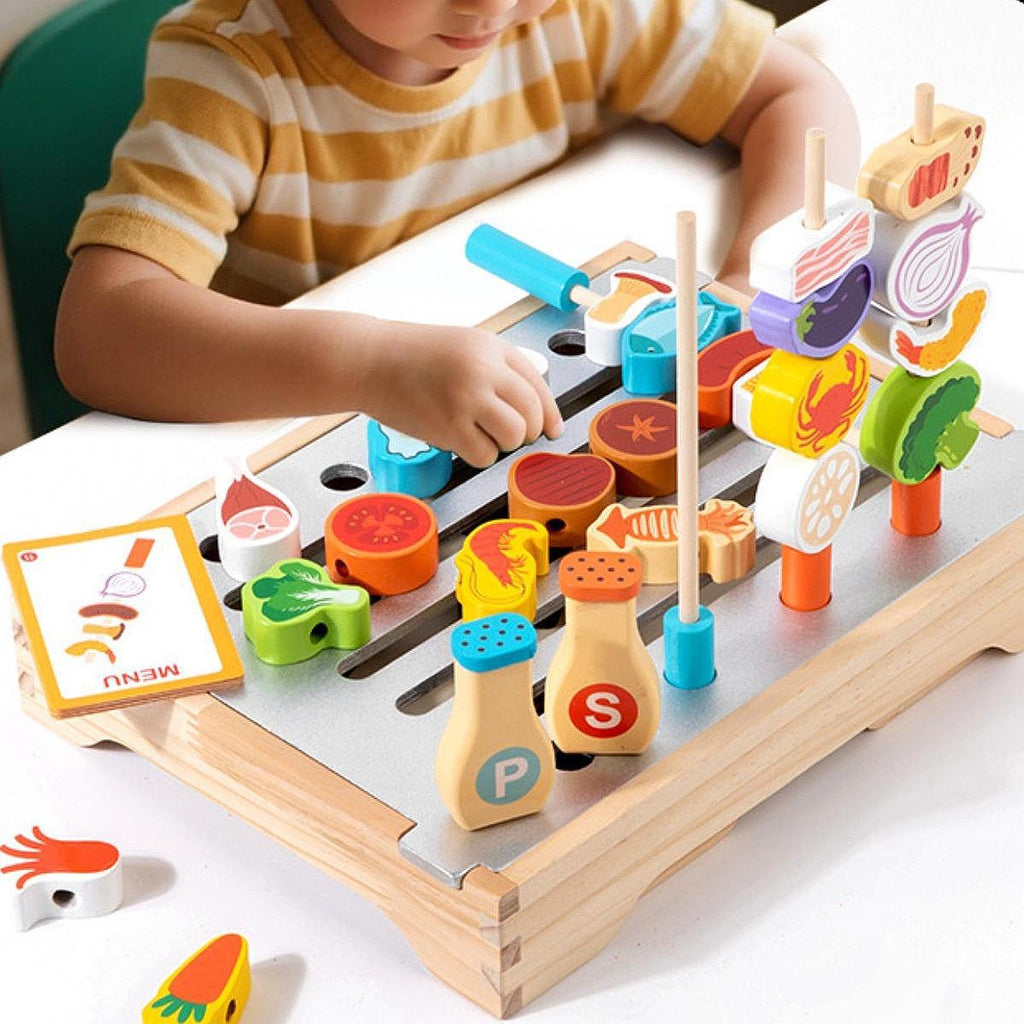 【Fine Motor Skills】: This Barbecue Grill Toy not only offers the fun of pretend barbecue making but also serves as a great tool for developing fine motor skills