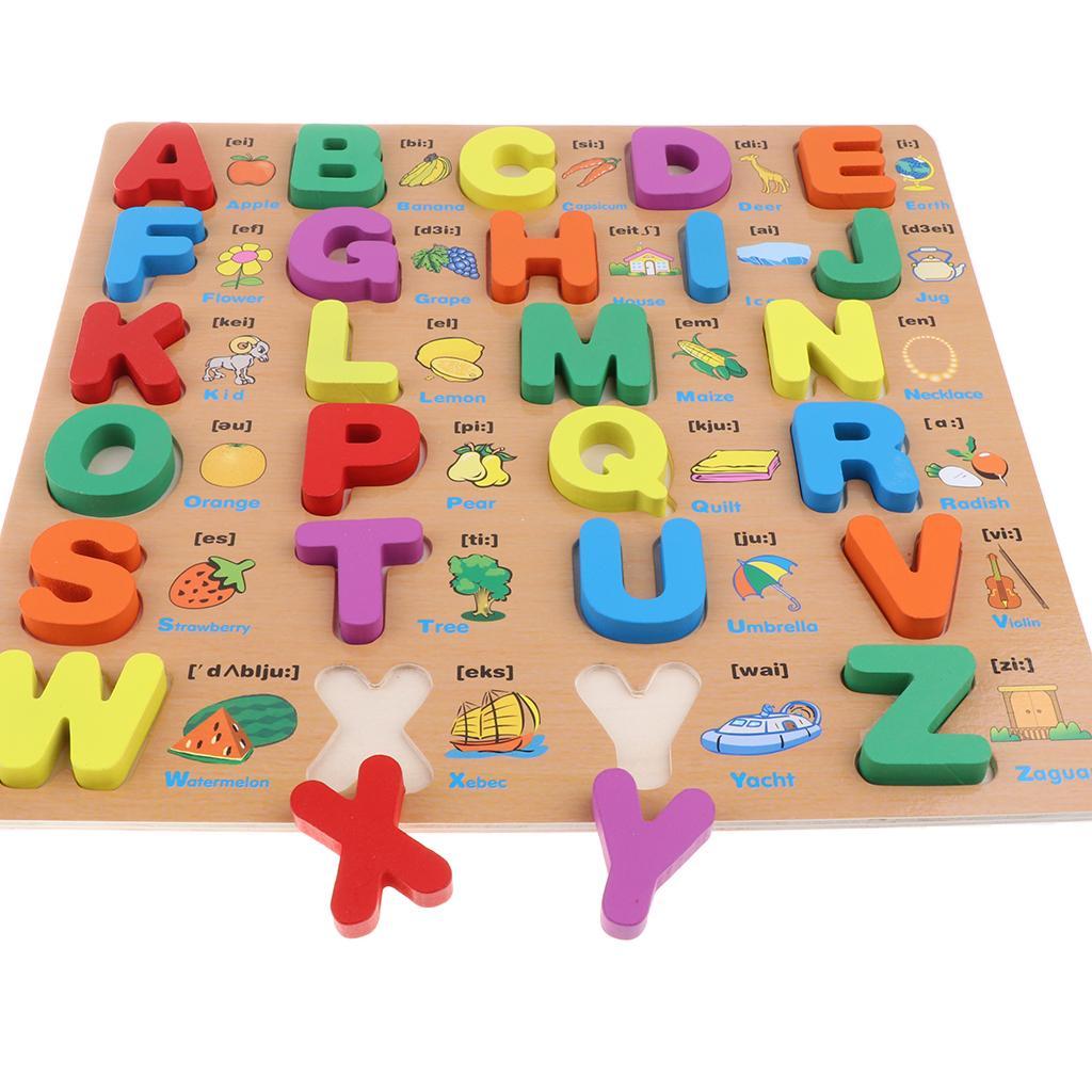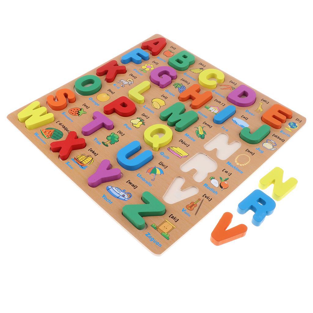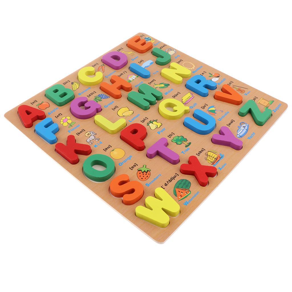 Wooden Capital Letters Blocks Puzzle Board Developmental Toy for Toddlers