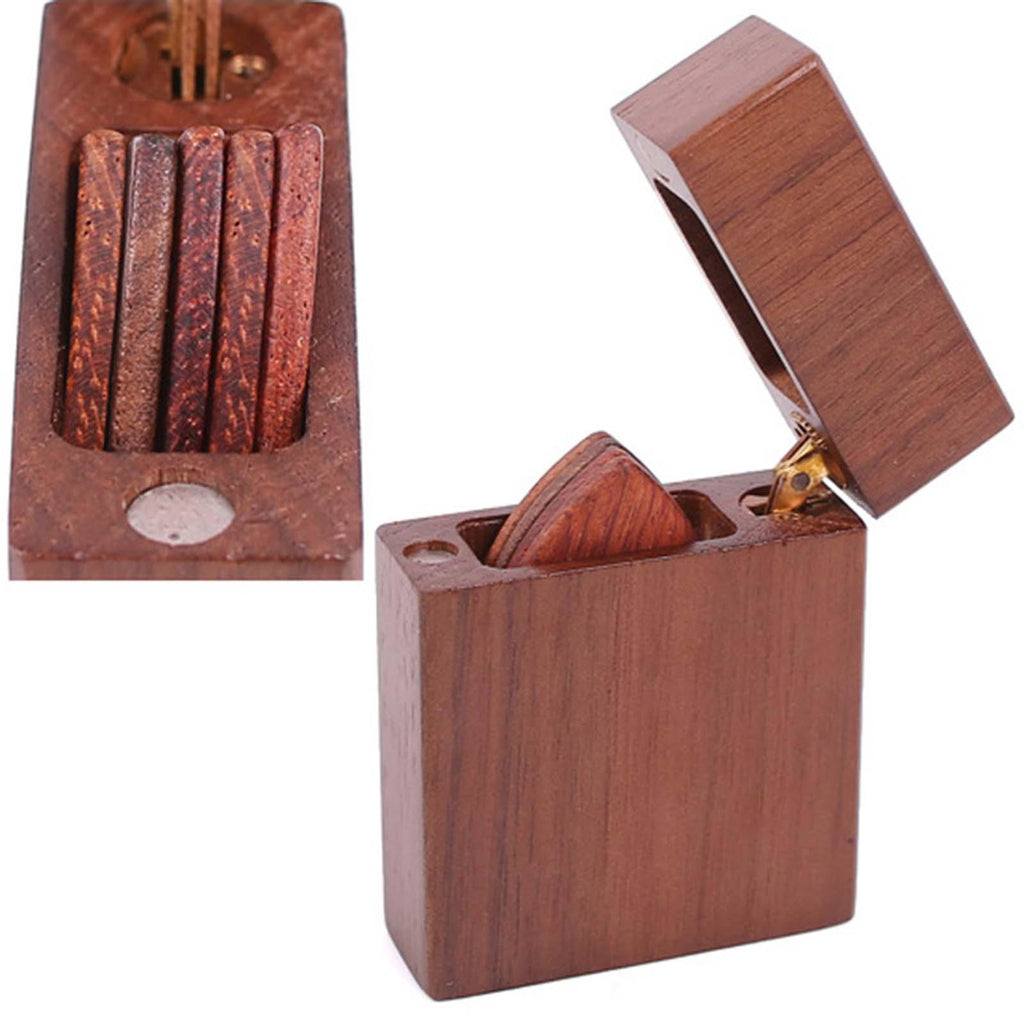 Maxbell Wooden Guitar Picks Case Handicraft Magnetic Closure Durable Guitar Pick Box with 5 picks