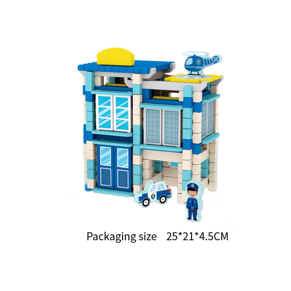 Maxbell Wooden House DIY Building Blocks Set Engineering Learning Toy Police Station
