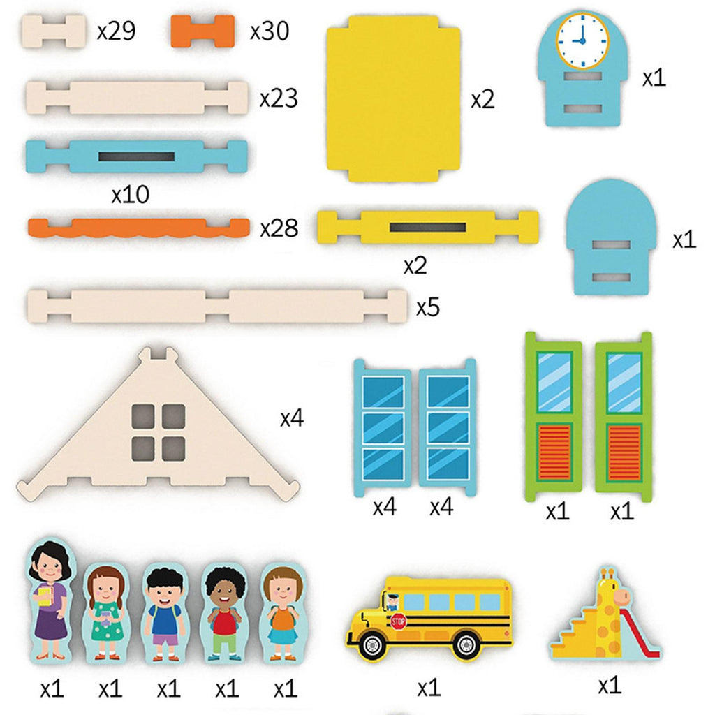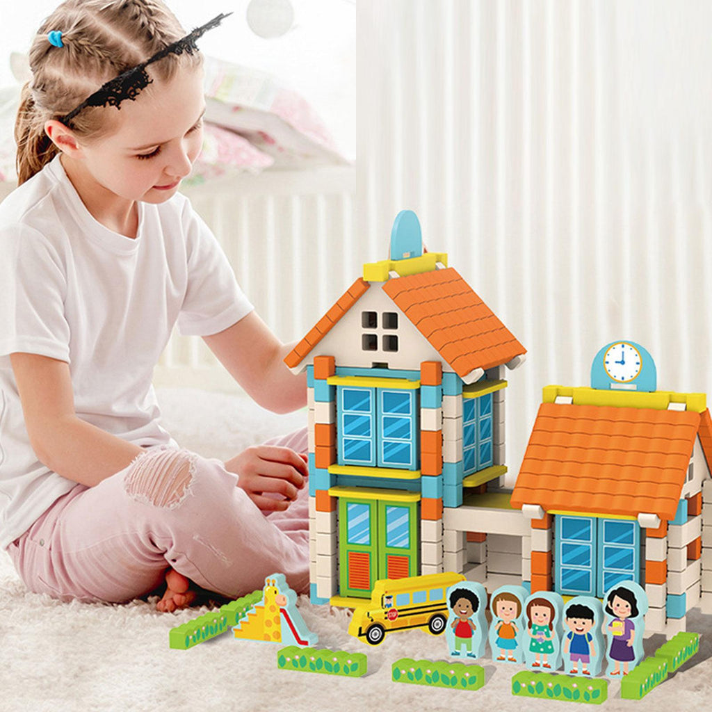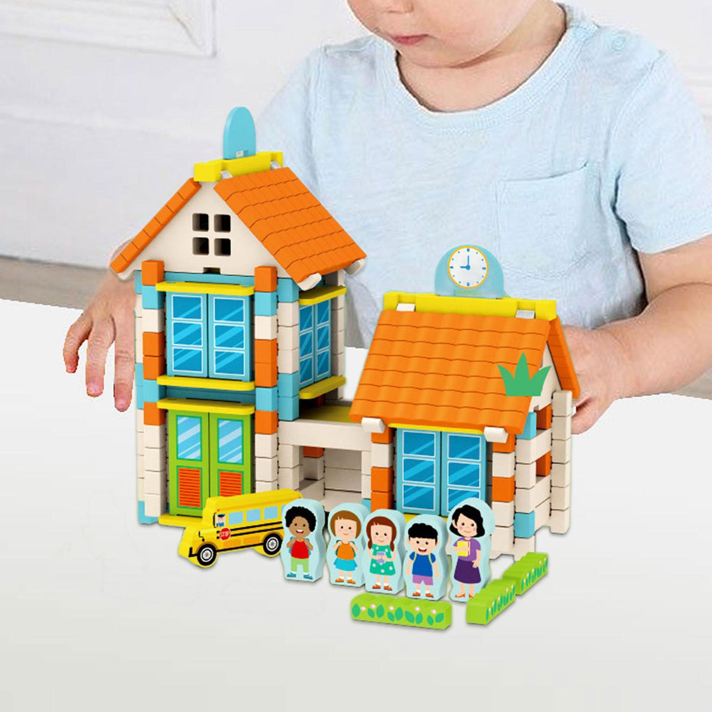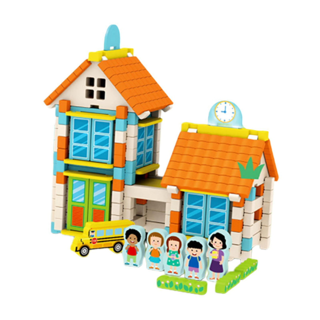 Maxbell Wooden House DIY Building Blocks Set Engineering Learning Toy School