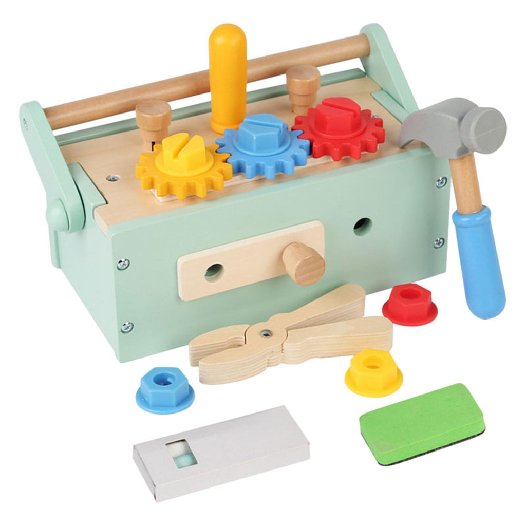 【Easy to Store】: Wooden construction toys are not only toys, but also storage boxes for tool accessories. When you are not playing with it, you can just put the small parts into the tool box and take them away.