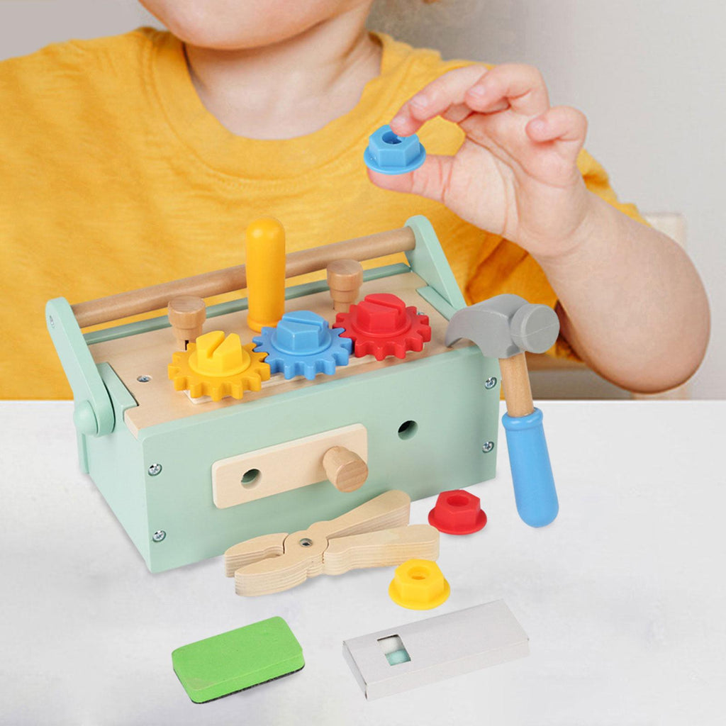 【Package included】: Wooden children's tool set includes screws, nuts, wrenches, gears, wood, etc. Babies can assemble the parts by themselves, cultivating children's understanding and ability to use tools.
