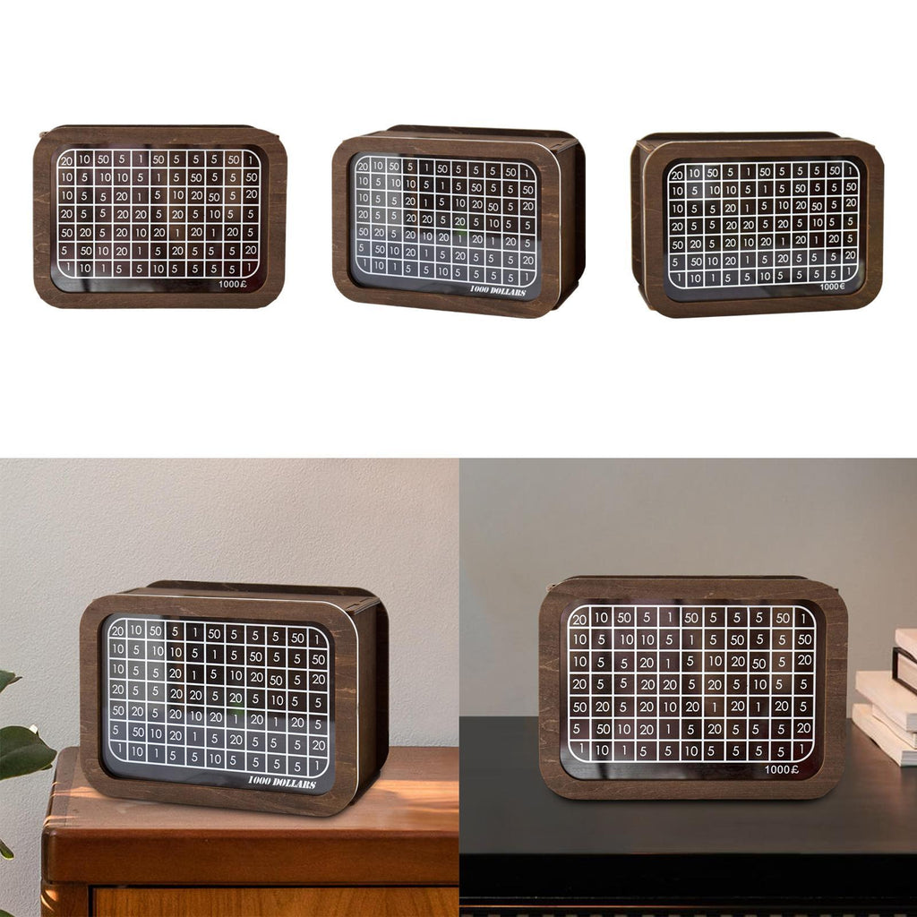 【Material】: Crafted from wooden materials, this compact and lightweight money box is space saving and portable. Made with quality acrylic and basswood plywood, it ensures durability for long time use