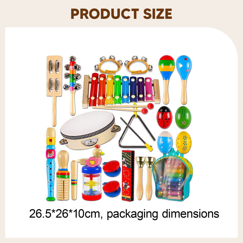 - 【Versatile】22piece percussion instrument set designed for babies and young children, featuring a variety of rhythm and wind instruments. An ideal creative gift for Christmas or any festive occasion.