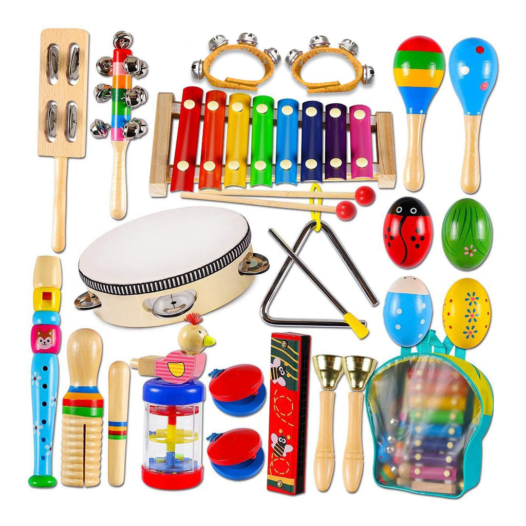 - 【Engaging】Introduce your little musician to different tones, volumes, and rhythms with this attractive instrument collection. Comes with a cute storage bag, great as a birthday or holiday present for preschoolers.