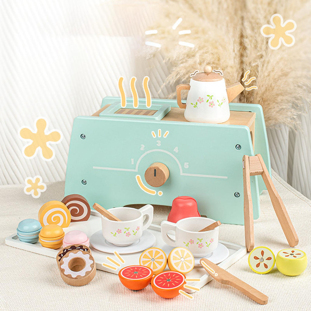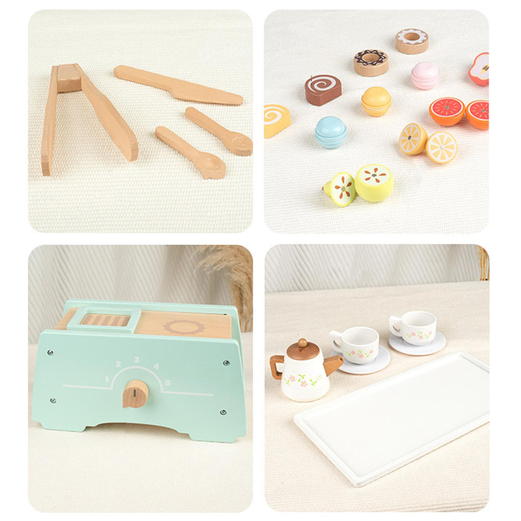 Maxbell Wooden Tea Set Role Play Educational Kitchen Food Accessories for Girls Kids