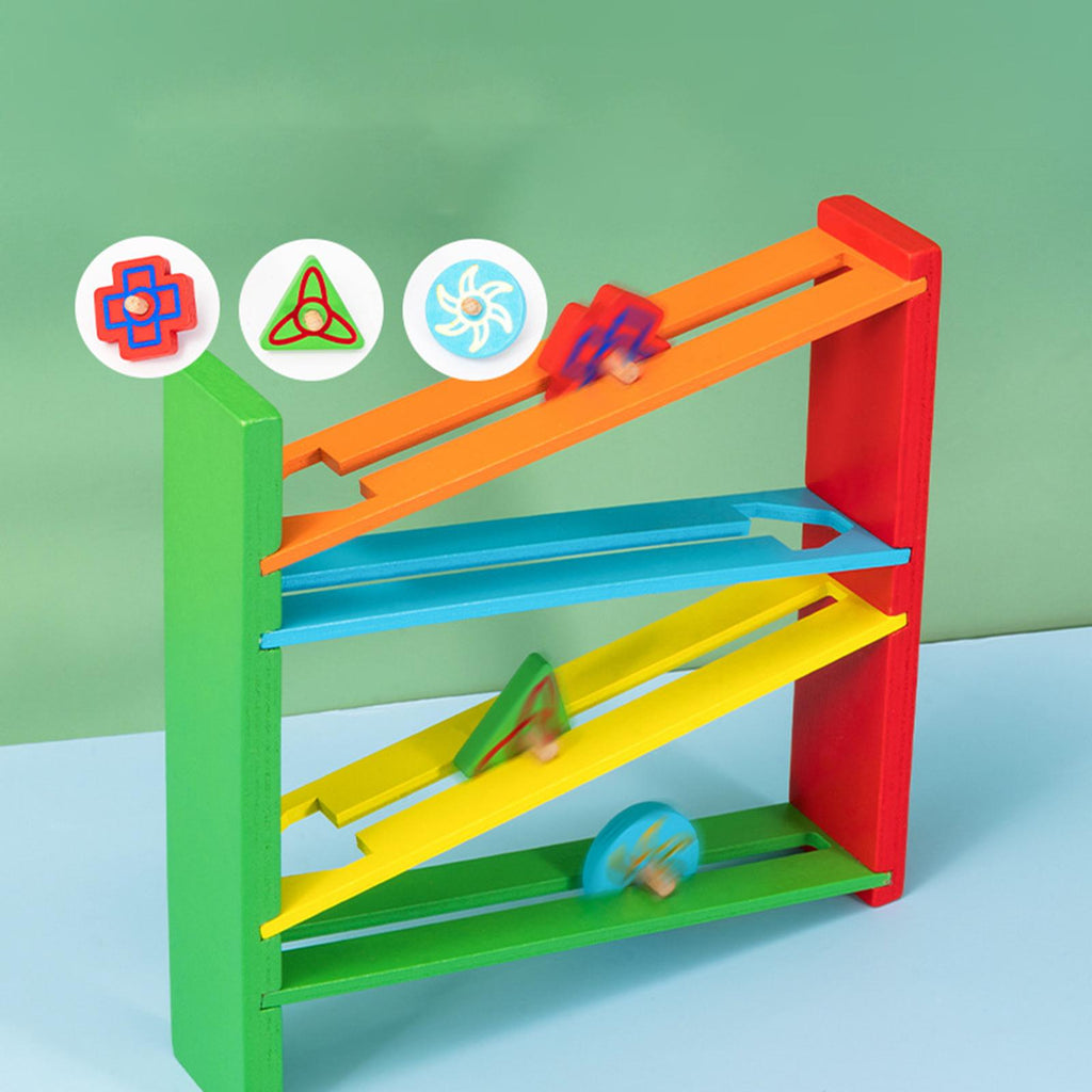 【Smooth Design】: The wooden track features a hollow groove design that allows the wooden gyroscopes to rotate 360 degrees smoothly, adding an extra layer of fun to time.