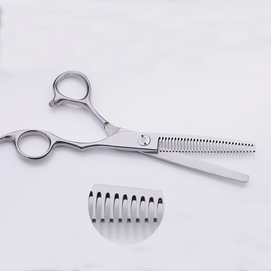 Leather case included: A PU leather zipper case is included for easy transportation and protect the scissors. Great tool for hairdressers, barbers as well as for family or individual use.