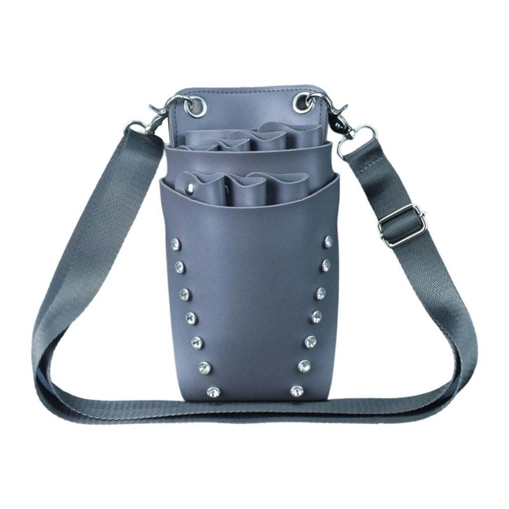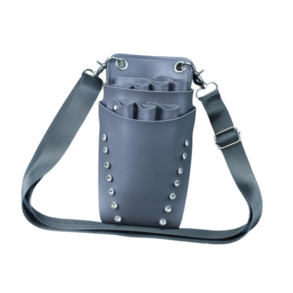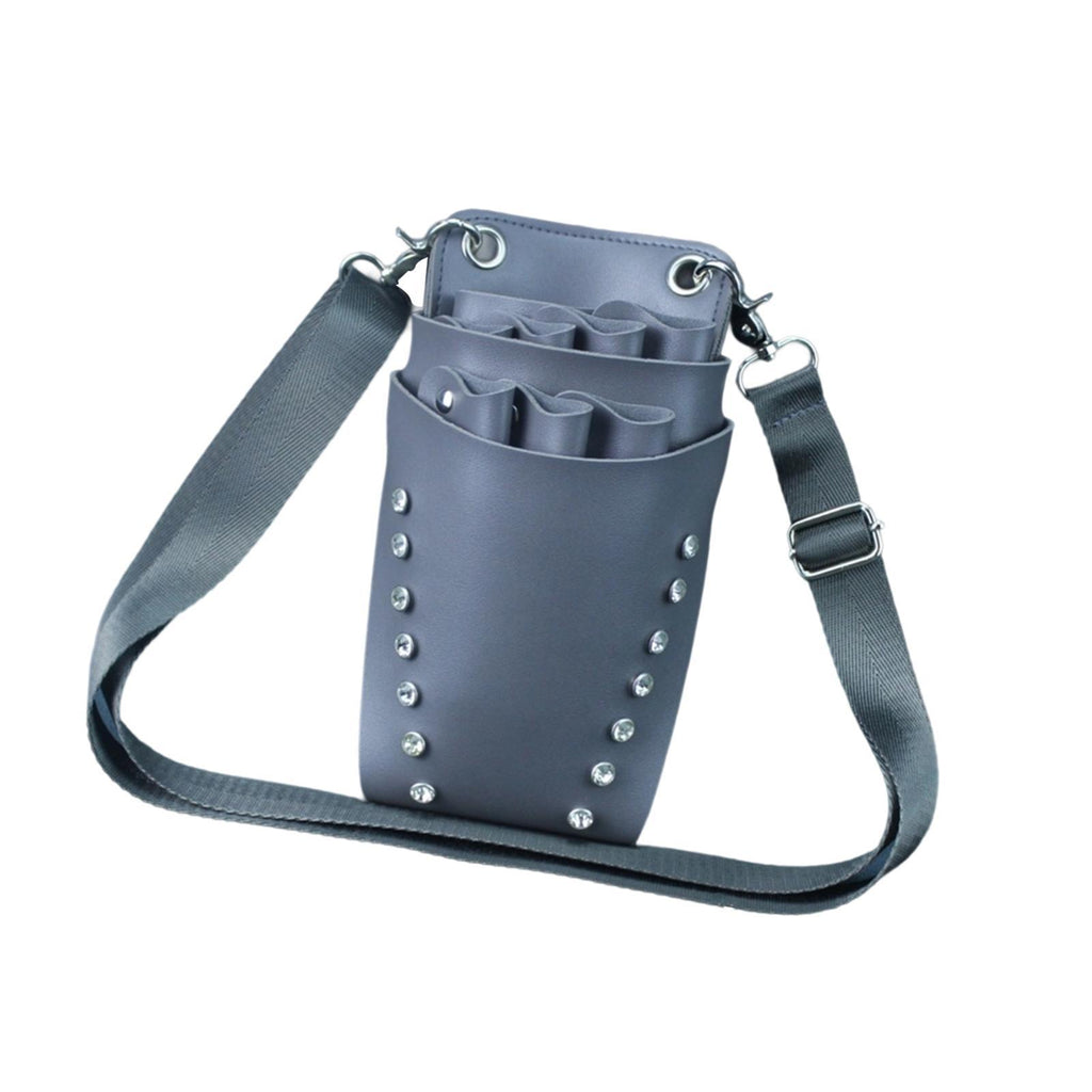 Maxbell Hairdressing Scissors Bag PU Leather Waist Bag for Salon Barbers Gray