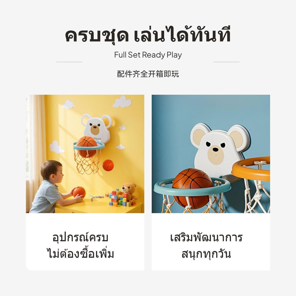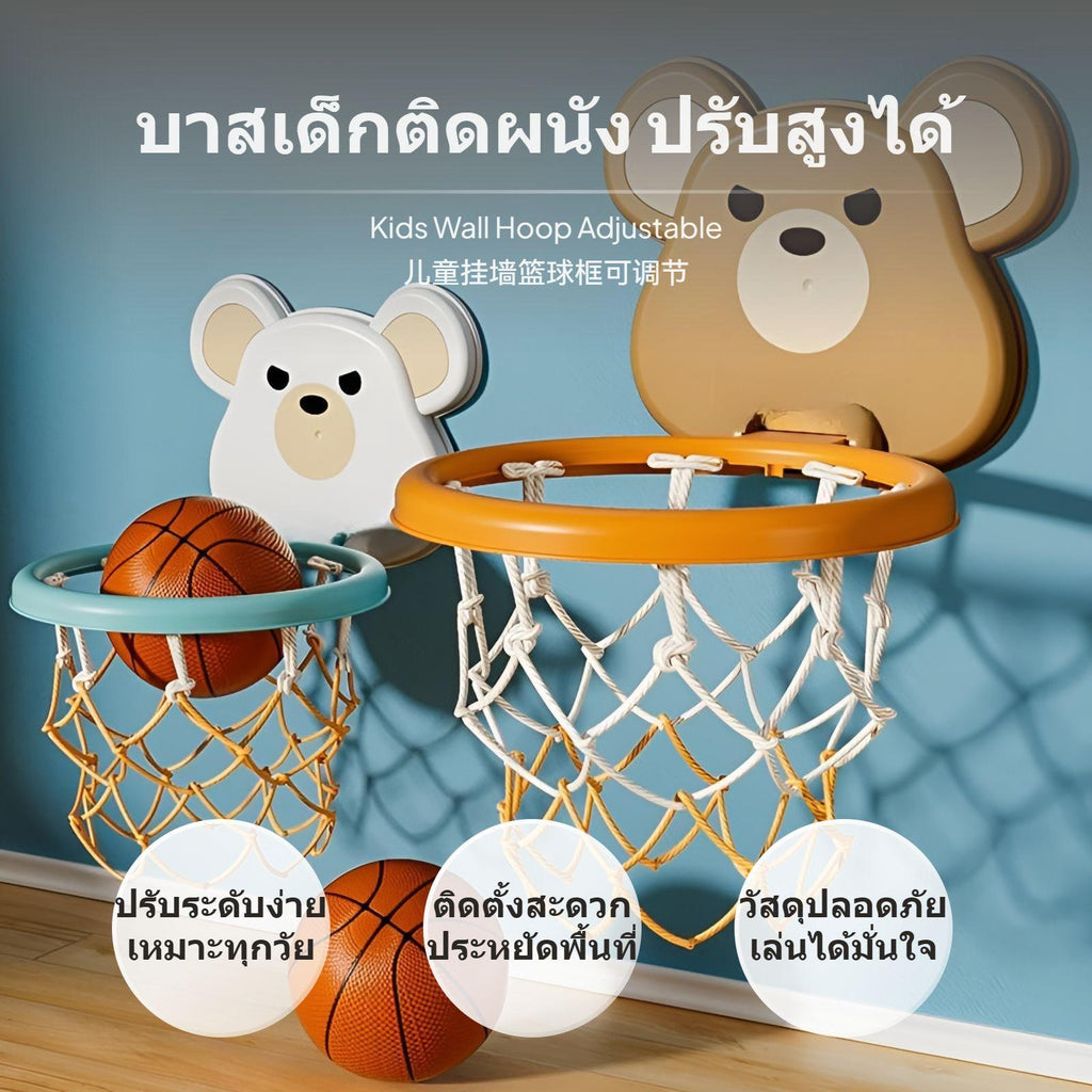 【Versatile Indoor Play】2 basketball hoop toy set for kids features a cute cartoon bear backboard, perfect for children ages 1-6 to practice shooting and develop hand-eye coordination at home.【Secure Suction & Hook Mount】Strong suction cups and adhesive hooks allow easy, stable installation on smooth surfaces like walls, glass, or wood, ensuring safe play without wobbling.【Durable ABS Construction】Made from sturdy ABS plastic, this basketball hoop supports up to 20kg, offering long-lasting durability and safety for energetic play.【Complete Accessories Included】Each set comes with 2 inflatable basketballs, pump, net, noise-dampening pads, adhesive hooks, suction cups, and a storage bag for convenient play and organization.【Fun Cartoon Bear Design】Adorable bear backboard in brown or white (randomly shipped) attracts kids’ attention, making indoor sports more enjoyable for boys and girls.Specification: