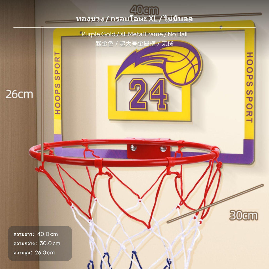 2 hoop basketball goals for children, Indoor Wall-Mounted, Foldable & Metal Frame XL Metal No Ball Purple Gold