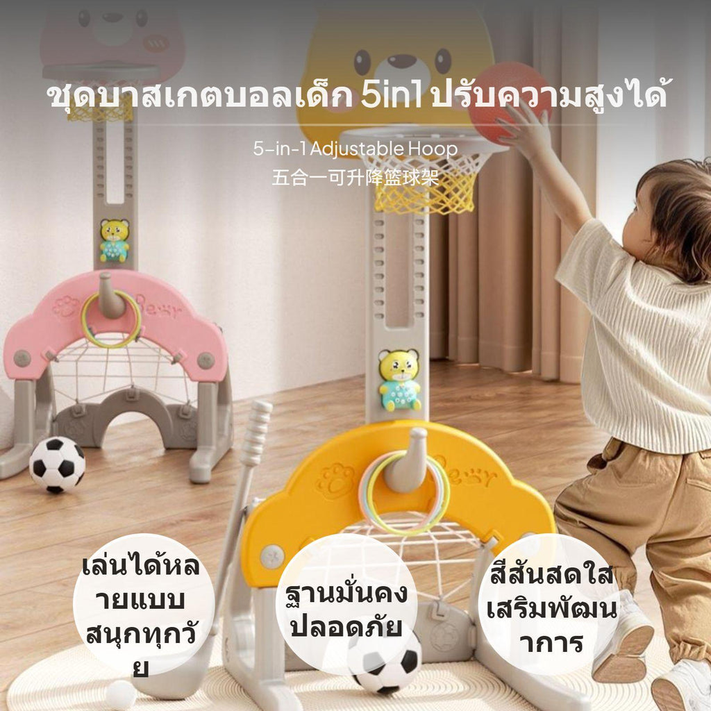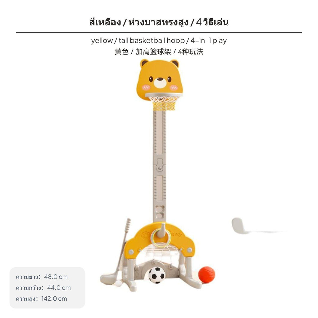 Adjustable Kids Basketball Hoop, 5-in-1 Sports Toy, Bear Design, Indoor TallHoop4in1 Yellow