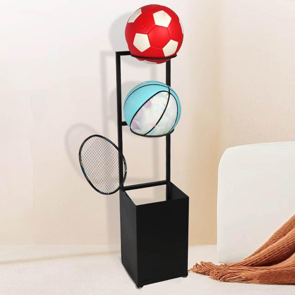 Material: The Vertical Ball Holder is made of iron material that makes this freestanding ball storage rack have a solid structure, stable and load bearing, available for long service life