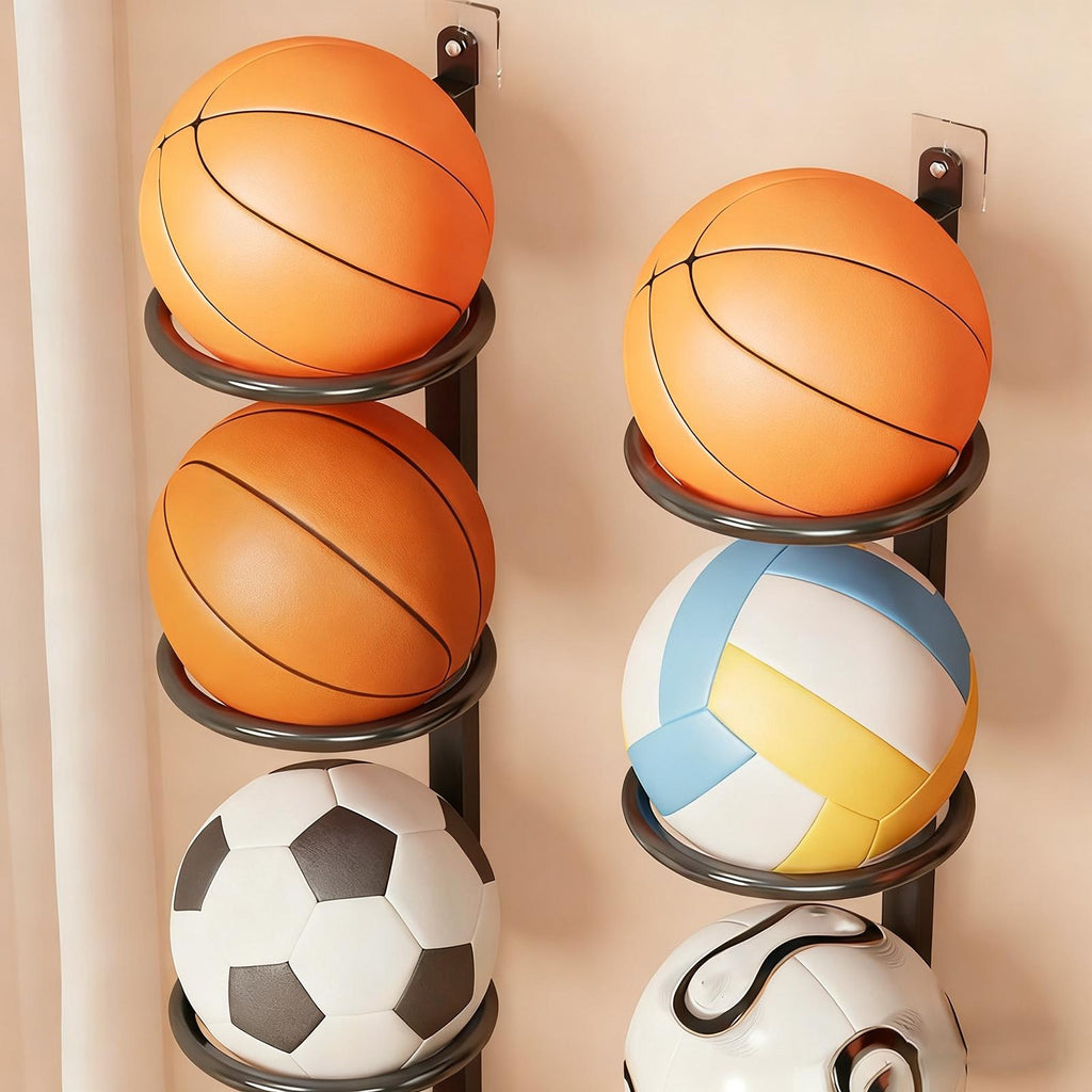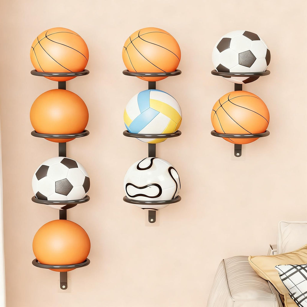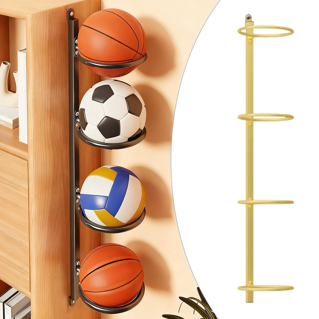 - 【Iron Construction】: Made from sturdy iron material, this ball shelf is built to last and securely holds your sports gear while maintaining a sleek appearance