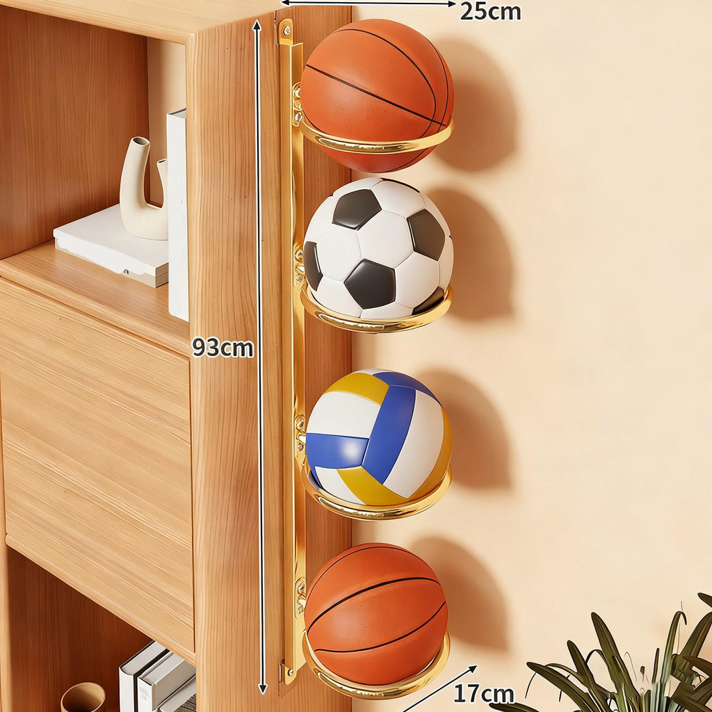 Basketball Rack Wall Mounted Display Storage Indoor Home Players Ball Holder Gold 25x93cm