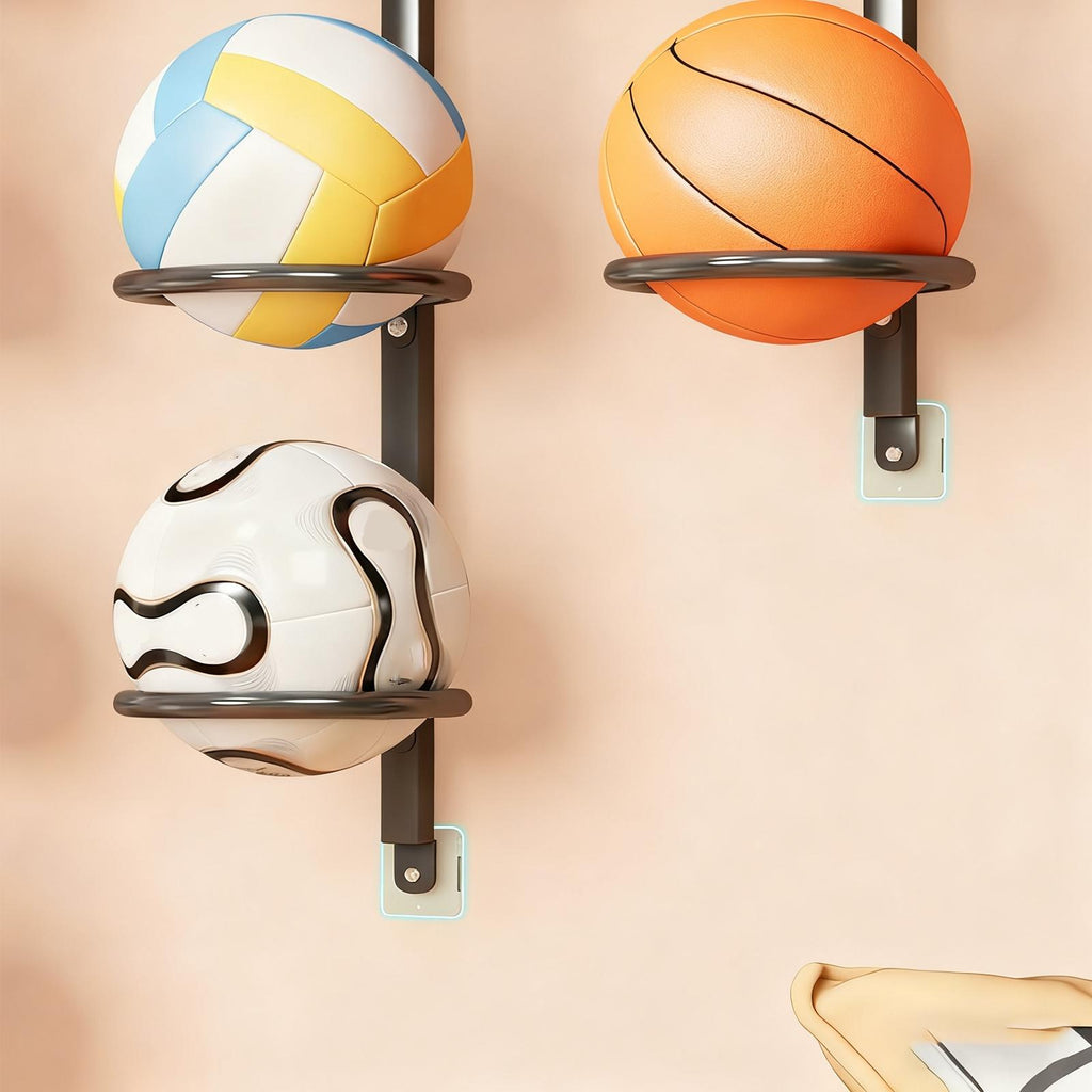 - 【Iron Construction】: Made from sturdy iron material, this ball shelf is built to last and securely holds your sports gear while maintaining a sleek appearance