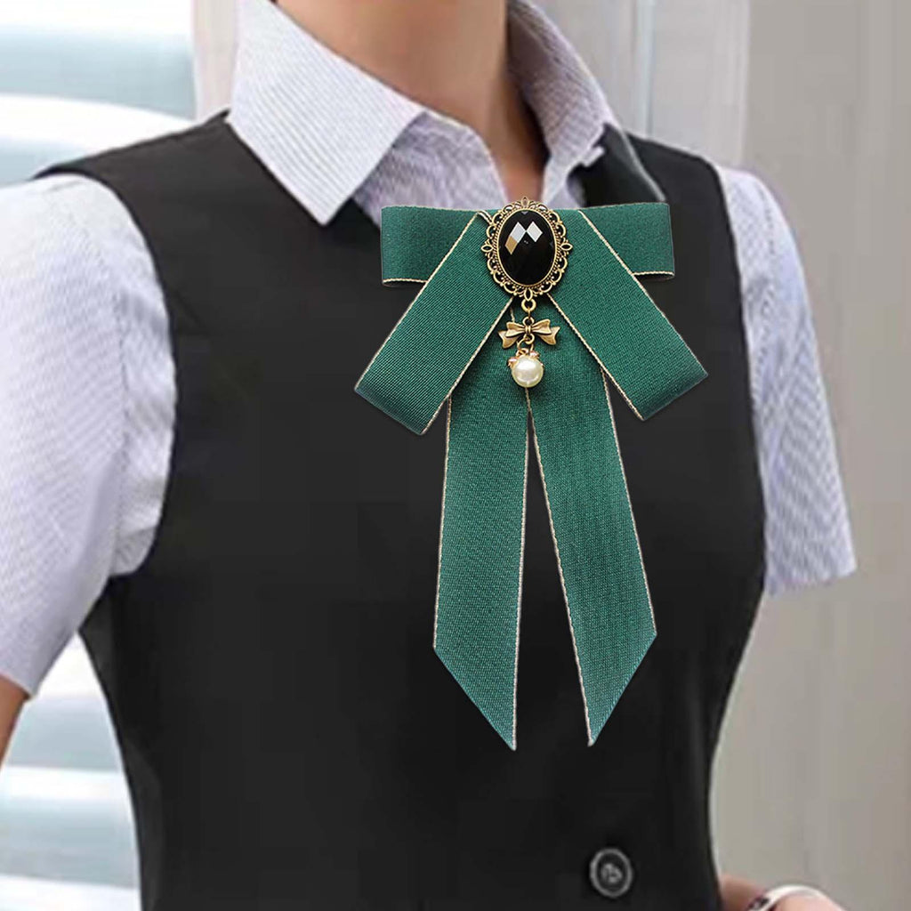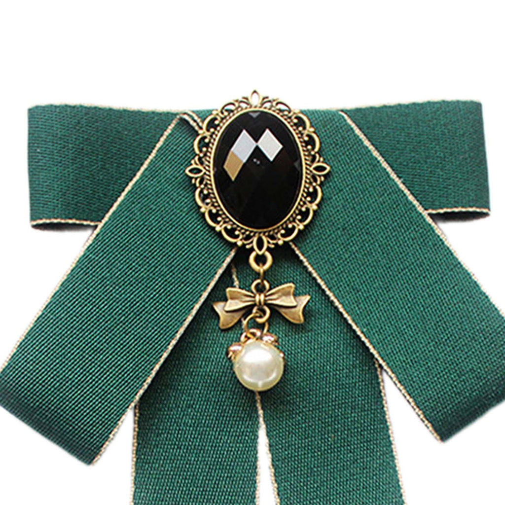 Maxbell Maxbell Bow Tie Ribbon Brooch Bowknot Bow Tie Gift Collar Pin for Shirt Uniform Suit Dark Green