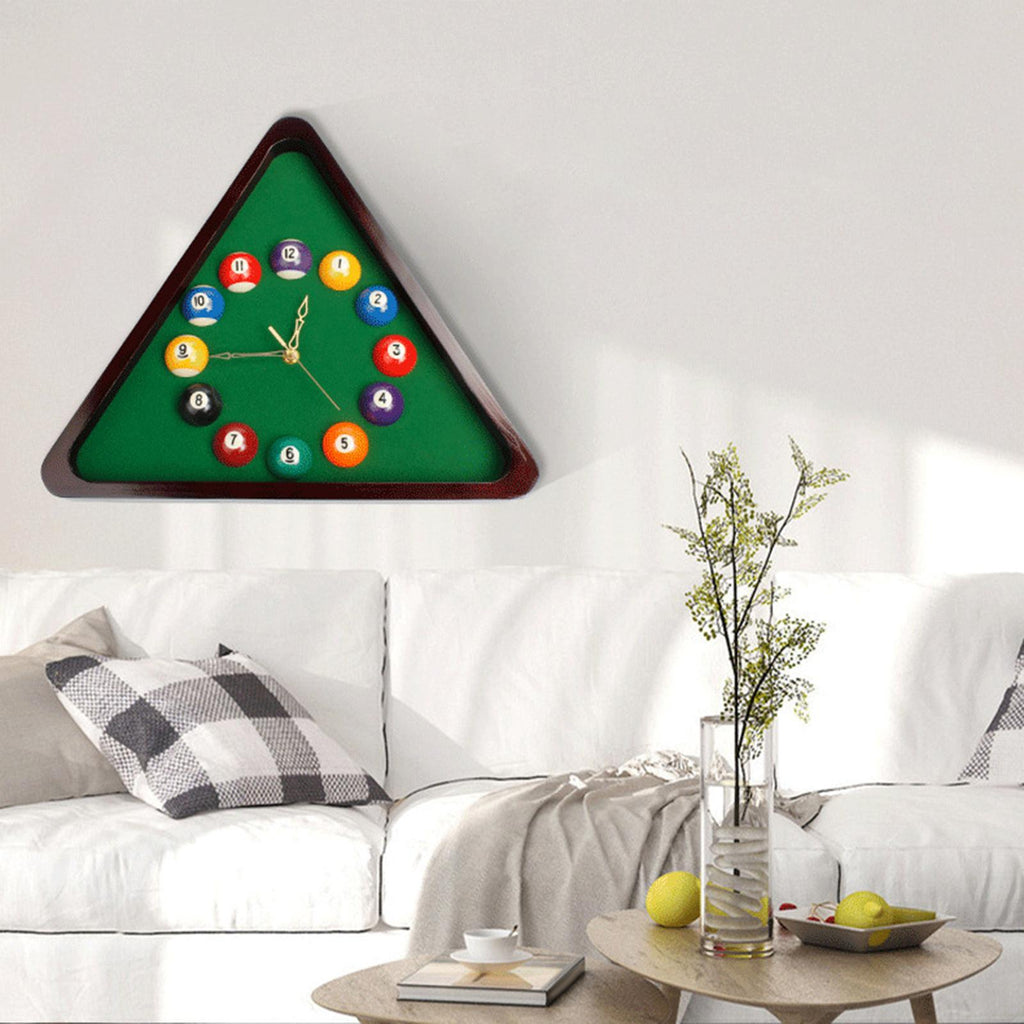 【Modern Wall Art】Billiards Decor Wall Clock with unique triangle shape, the half of the ball with big billiard ball number, modern wall decoration, lovely home interiors, room decorations