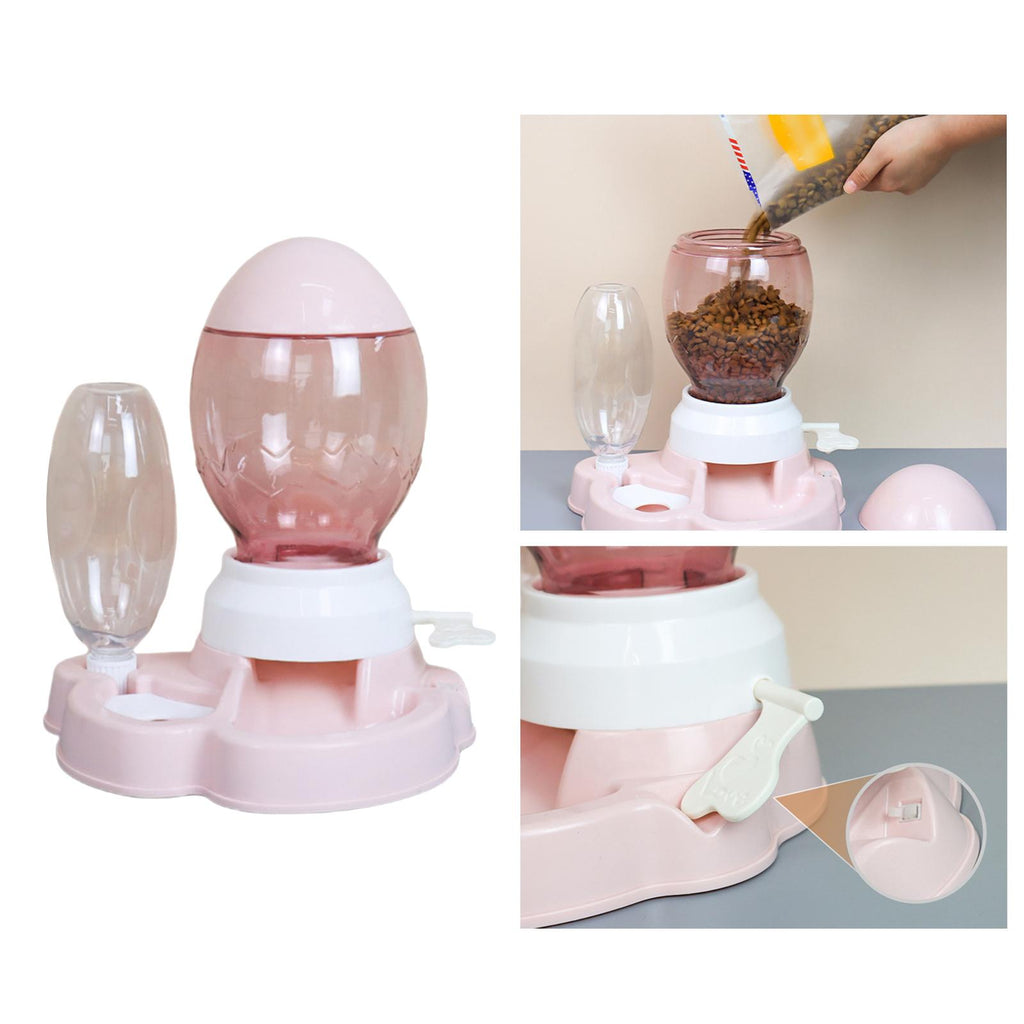 2-in-1 Design - This pet automatic feeder combine pet food dispenser and pet water dispenser, includes a water bottle and a food can. It is a good helper for feeding cats, dogs, rabbits and other small animals.