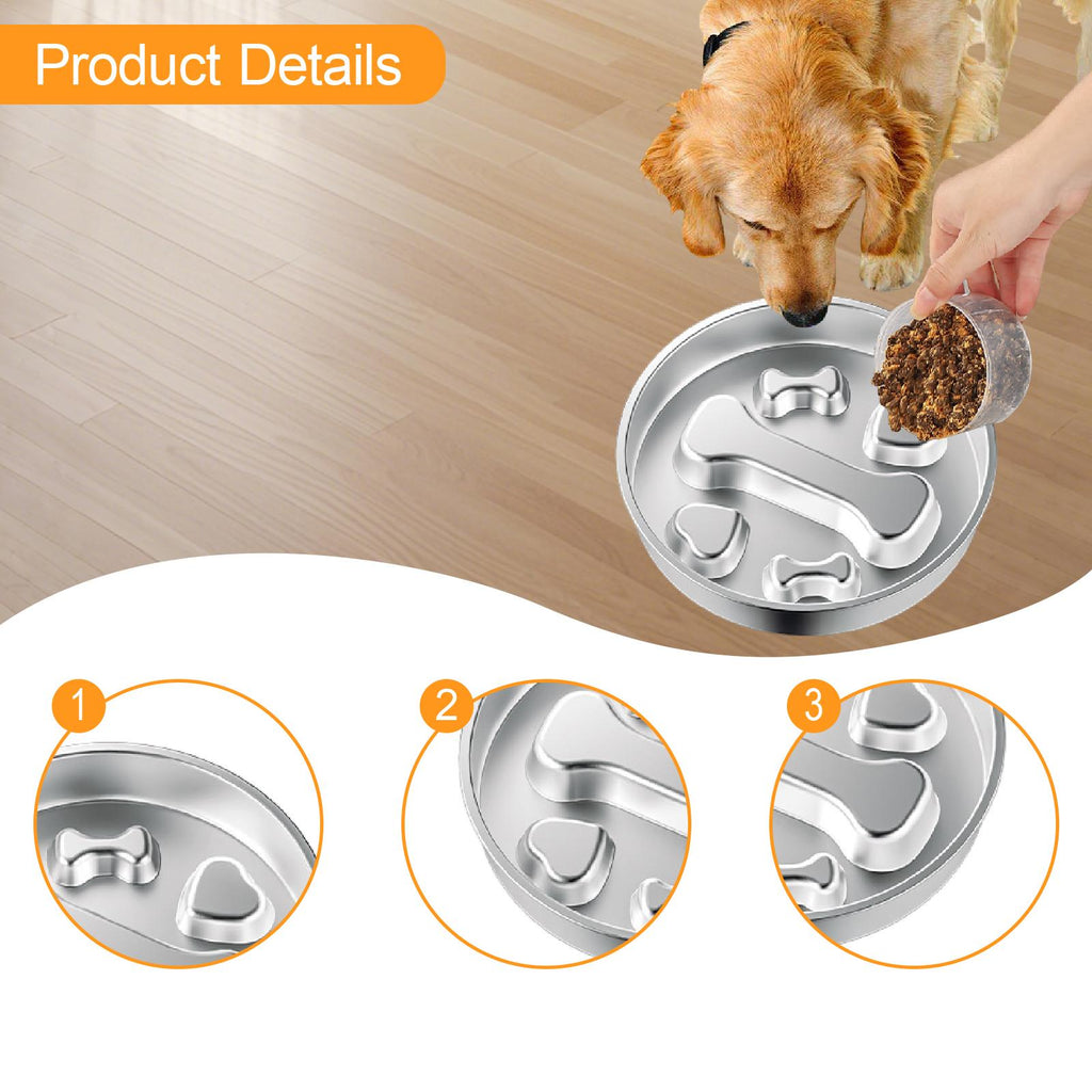 Dog Slow Feeder Bowl Stainless Steel Cat Feeding Bowl for Kitty Kitten Puppy Style A