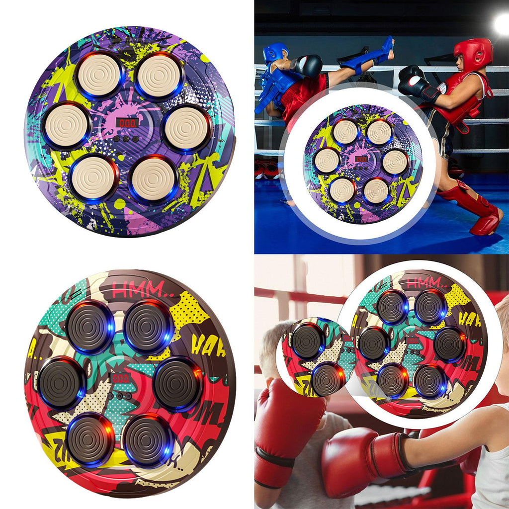 - 【Kid Friendly Design】Made from plastic with lights and rhythmic music effects; compact size (280*280*30.8mm) fits any home space. Requires 3 AA batteries (not included). Boxing gloves not included