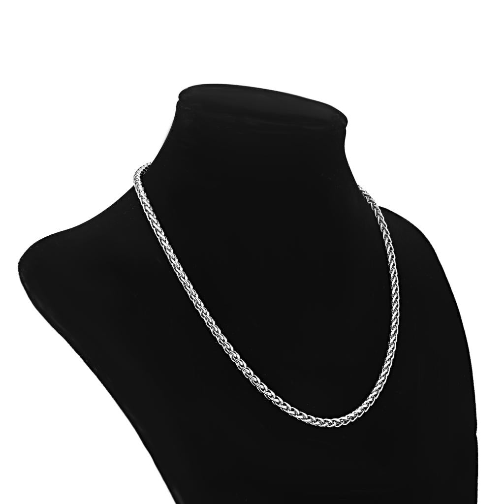 Maxbell 3x4mm 20" MENS Silver Stainless Steel Wheat Braided Chain Necklace