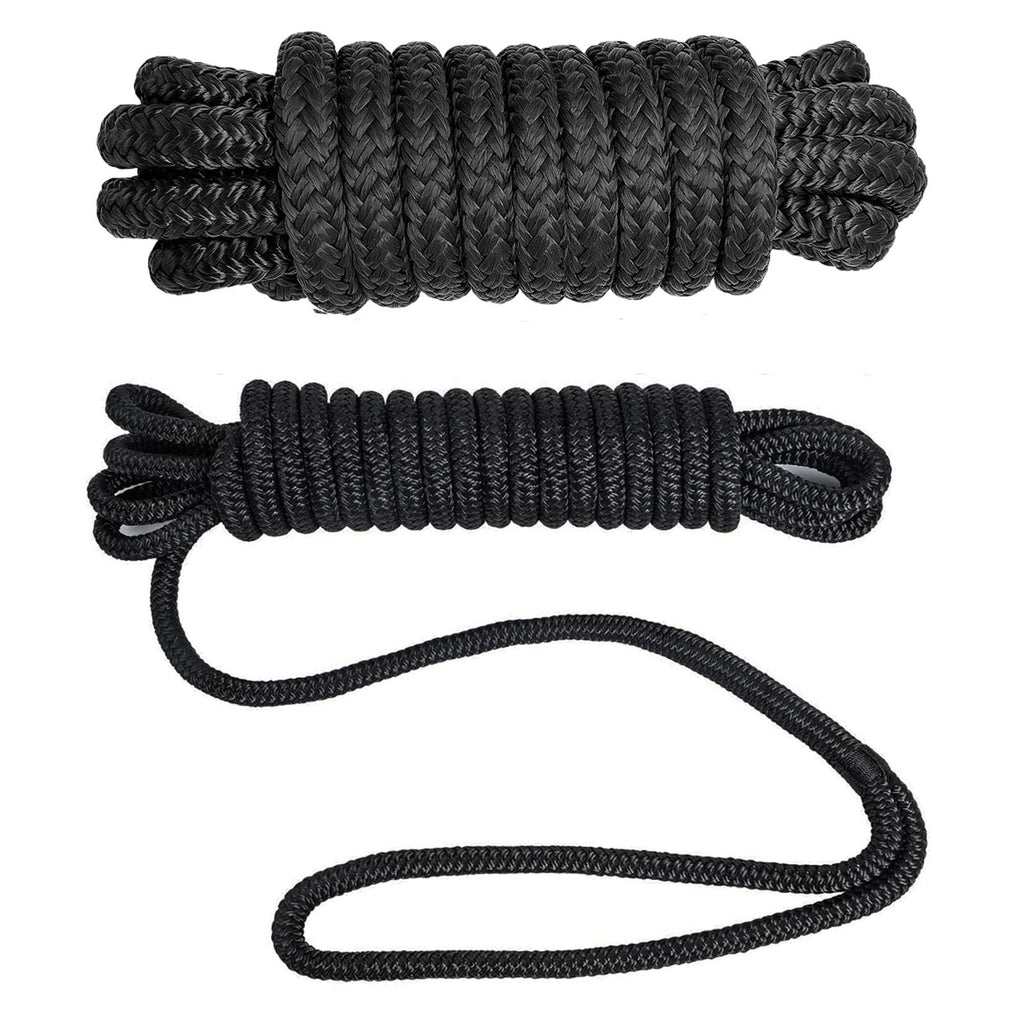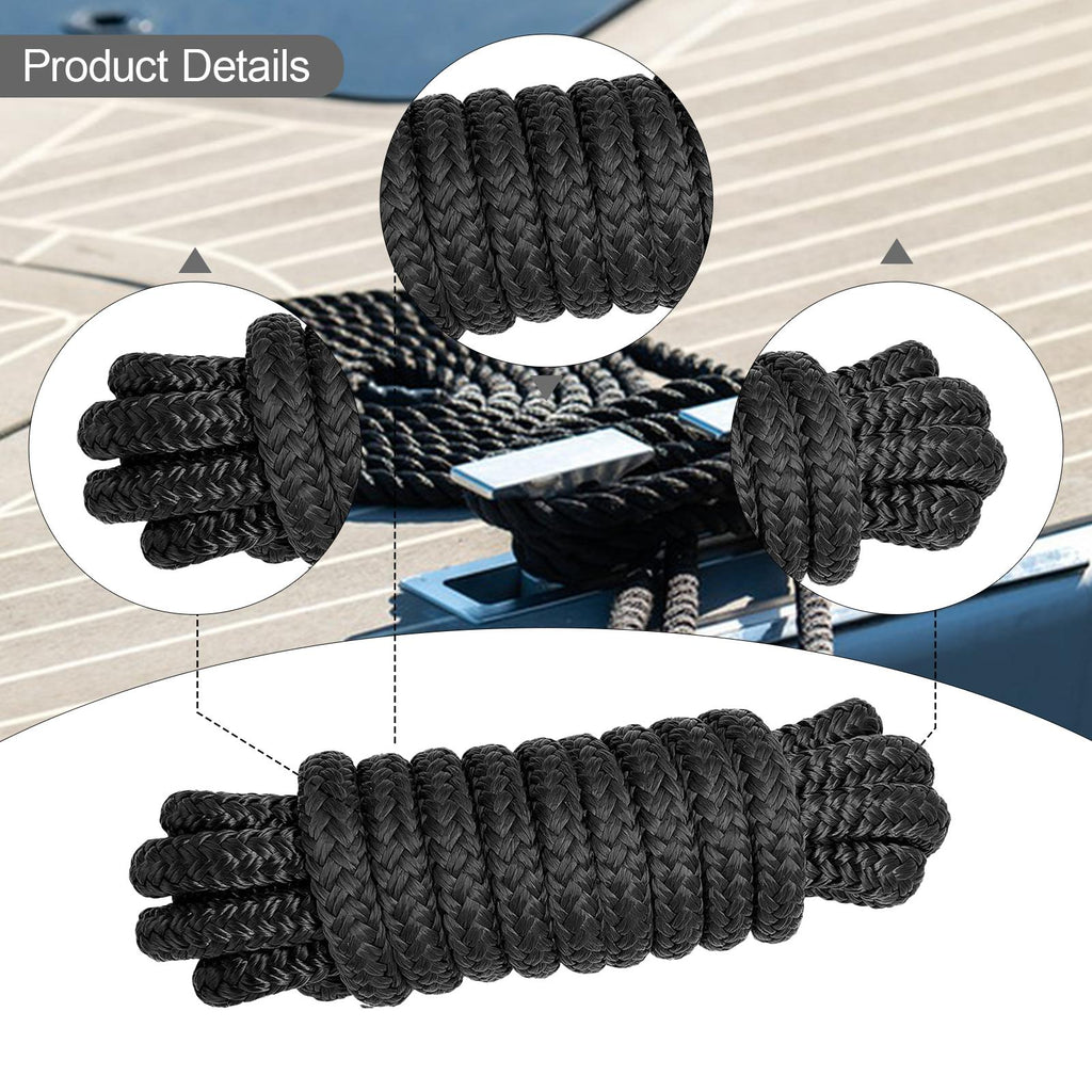 Maxbell Boat Dock Line Easy to Use High Strength for Boat and Pontoon Double Braided Black