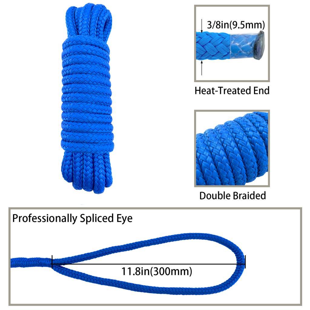 - 【Boat Dock Line】: The Boat Dock Line has a diameter of 9.5mm and a length of 4.6m. These ropes withstand heavy loads without knotting or twisting, while also protecting the paint on your boat