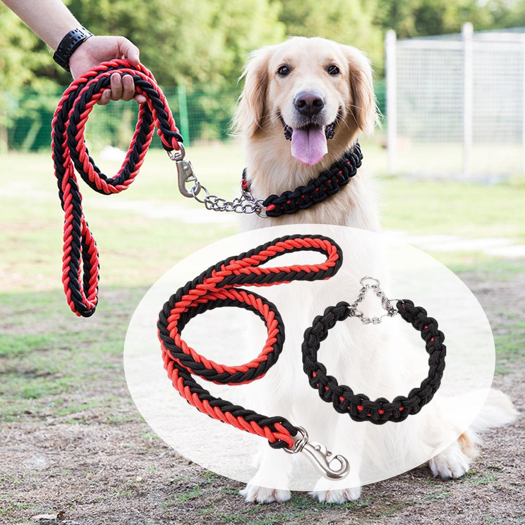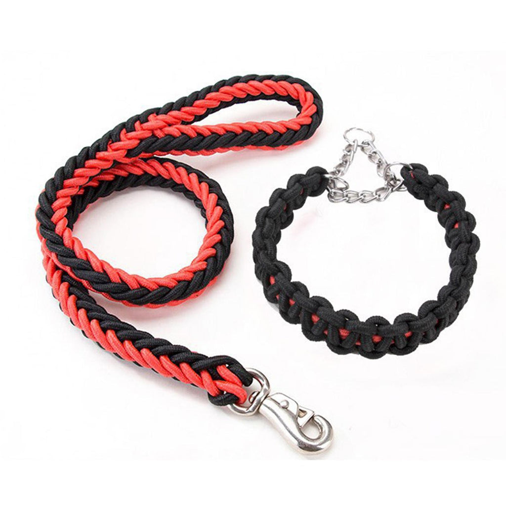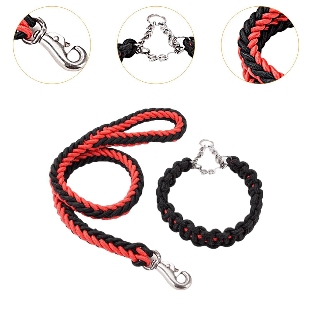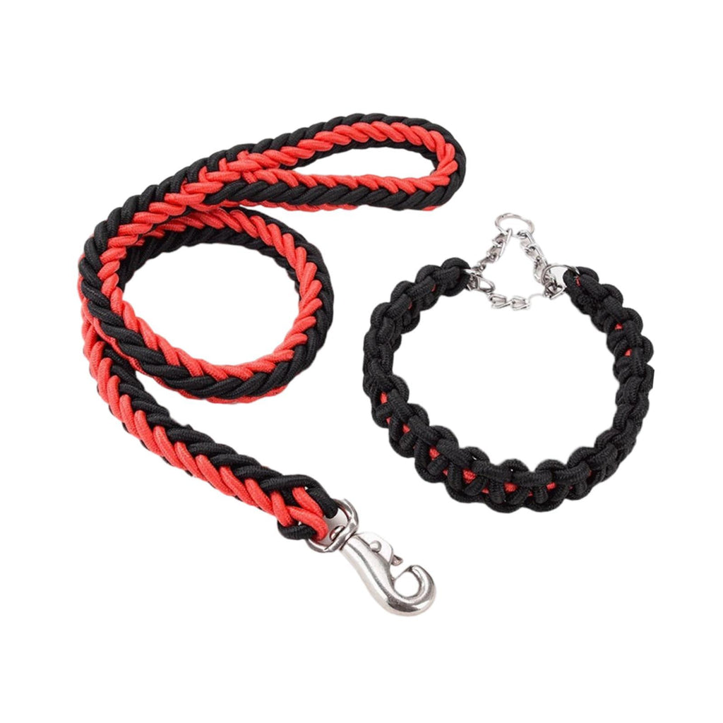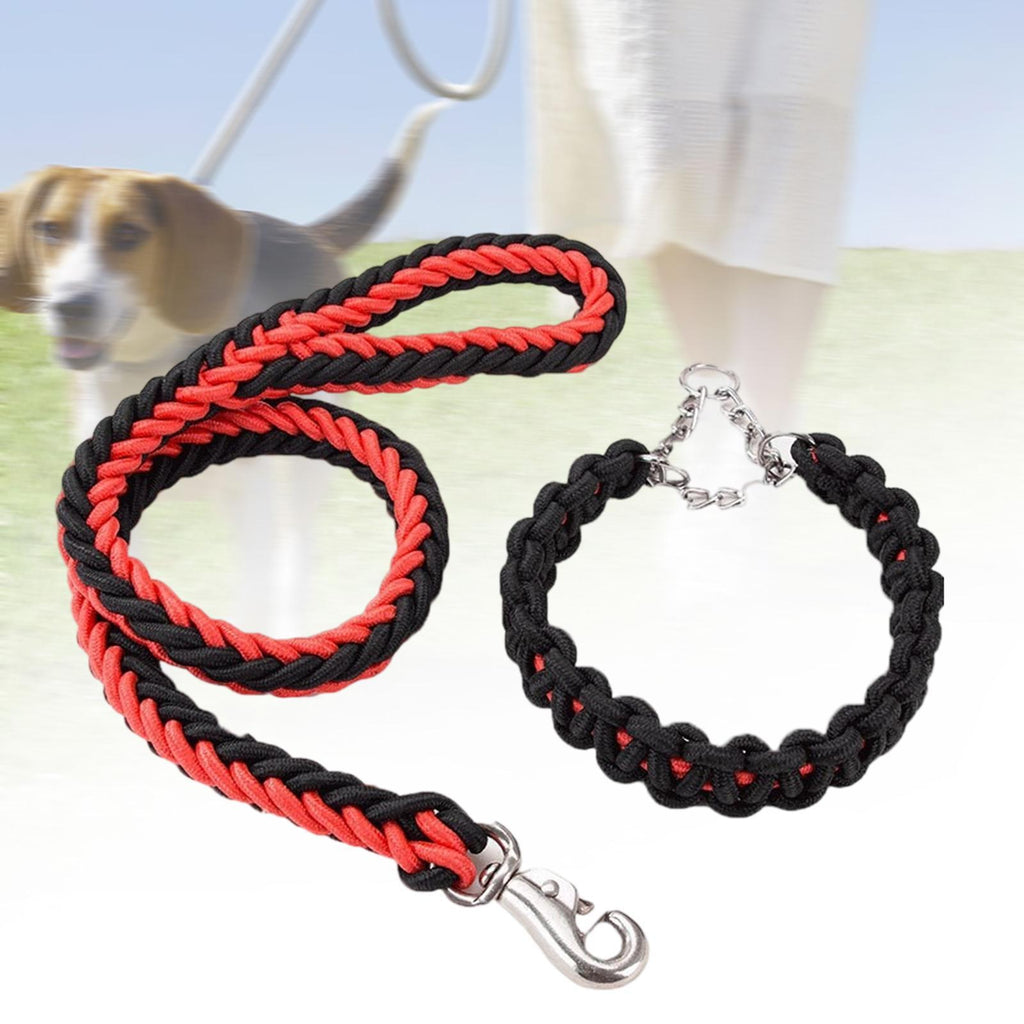 Maxbell Braided Dog Leash Convenient Dog Training Leash for Outdoor Red Black