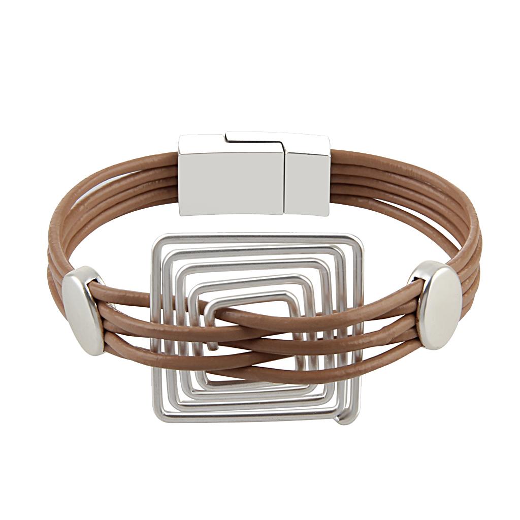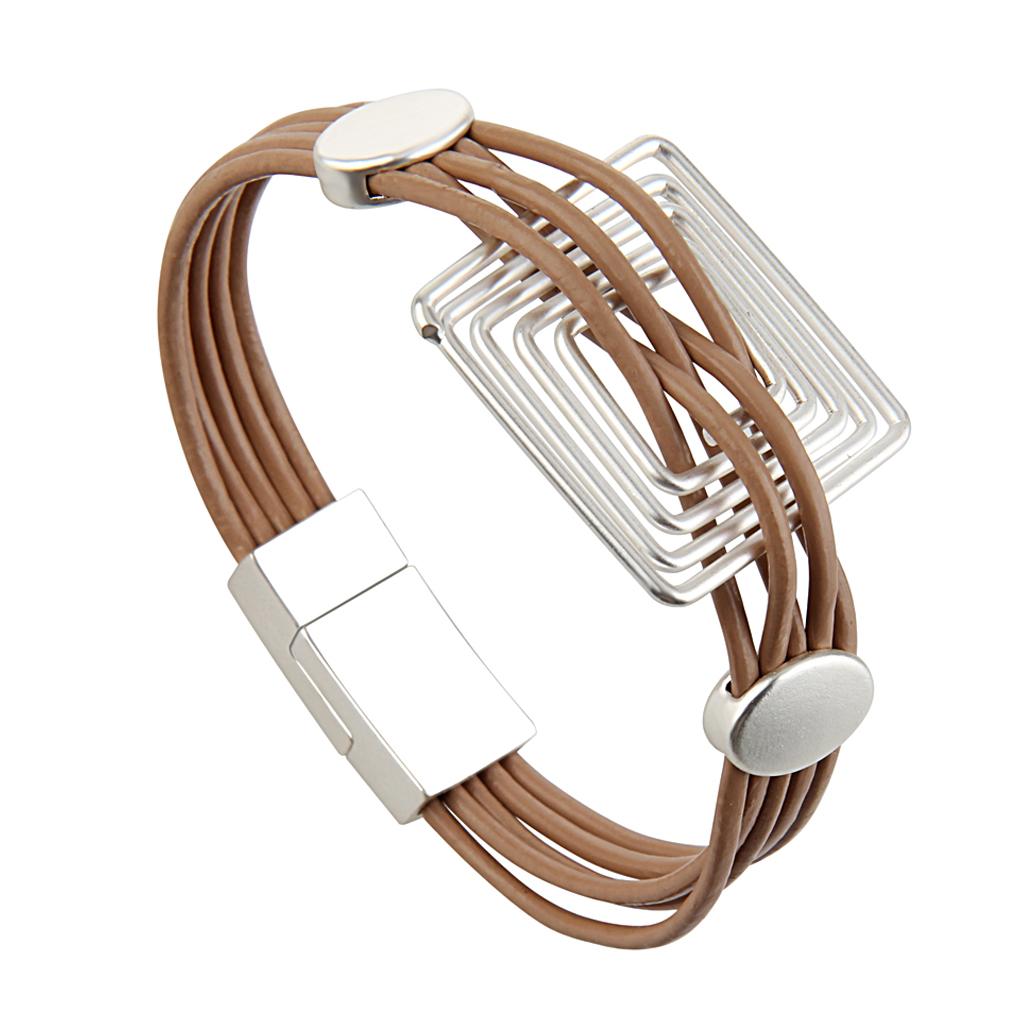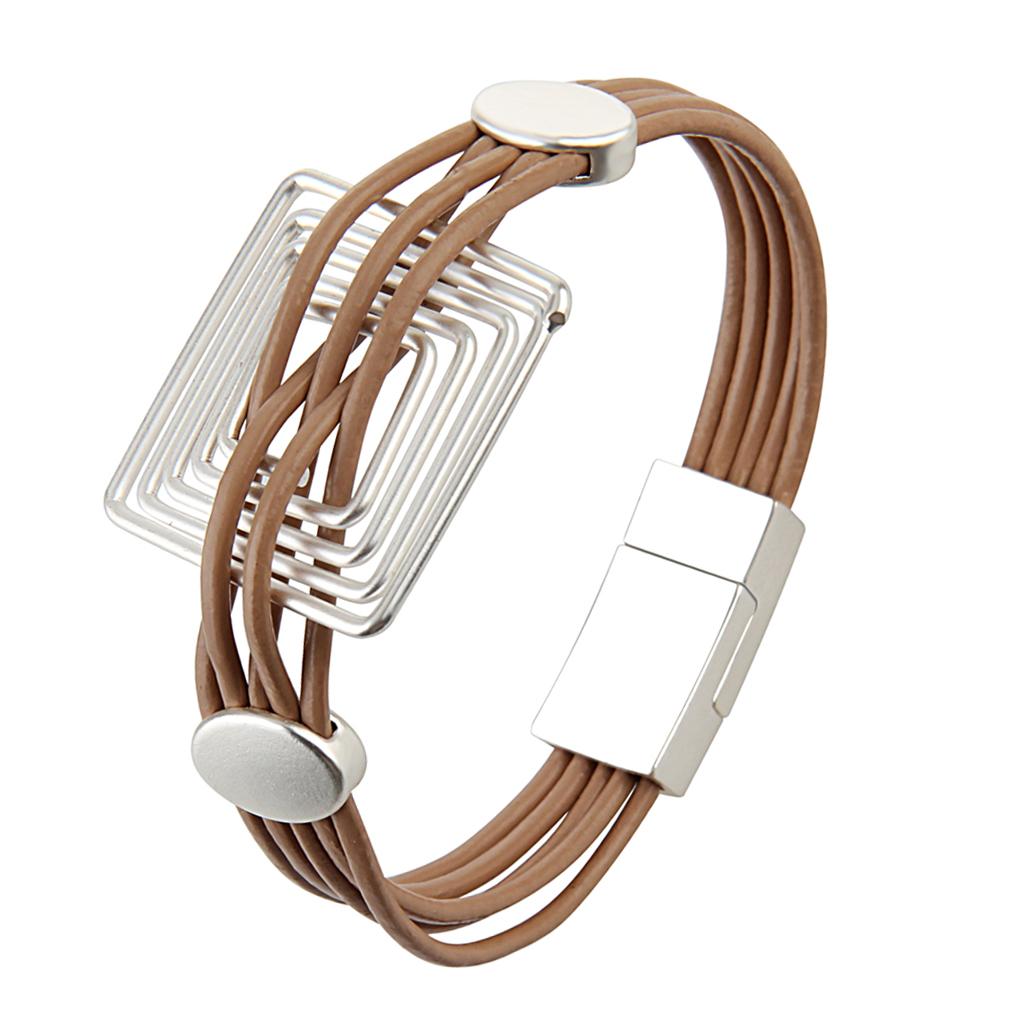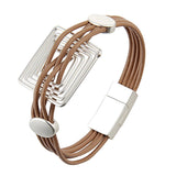 Silver alloy metal secure magnetic clasp, multi layer pu leather wrap bracelet;
