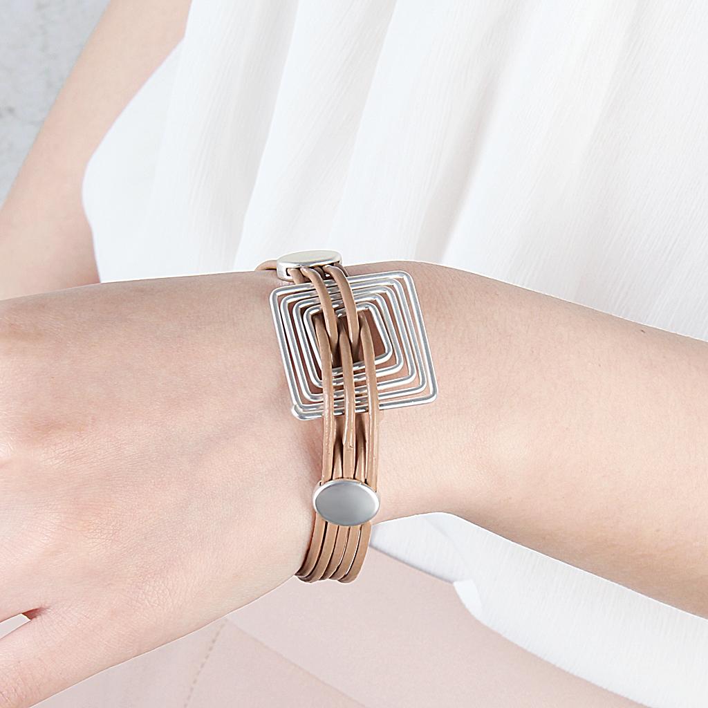 Material: Alloy, PU Leather, Magnetic Buckle;Bracelet size approx. 19.5x1.2cm/ 7.6x0.5 inch, square alloy diameter approx. 3cm/ 1.2 inch