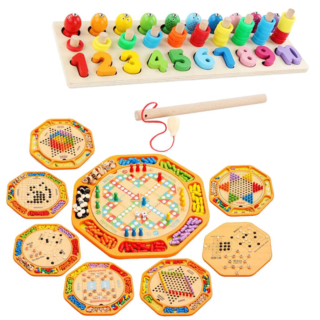 Montessori Educational Toys - Set of 12 Wooden Chessboard Flying Chess for Kids