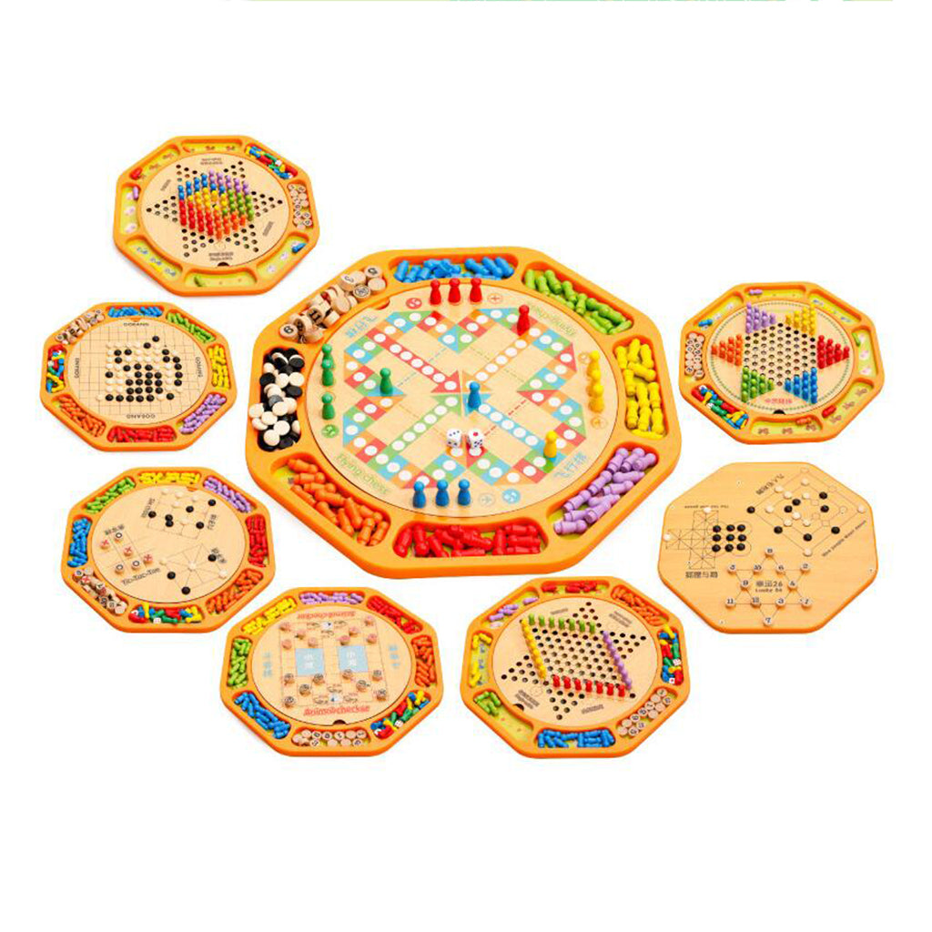 Multifunctional Hexagon Wooden Chinese Checkers Family Game.