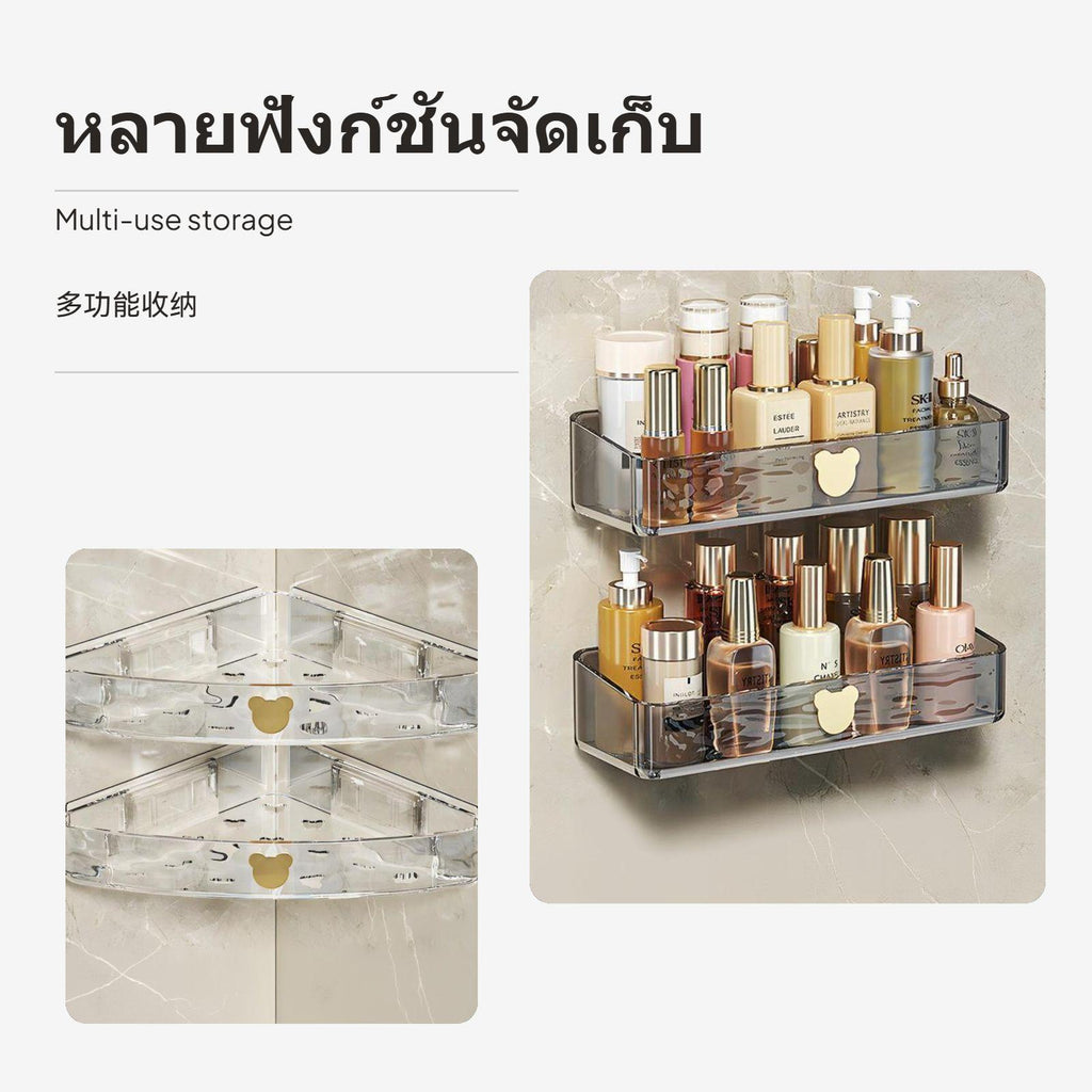 [Space-Saving Corner Solution] This 2-pack bathroom shelf set features a distinctive triangular shape designed to maximize corner spaces in your bathroom, washstand, or toilet, keeping your essentials organized and easily accessible.[No-Drill & Strong Adhesion] Features an easy installation process with a no-drill sticky mounting, ensuring wall integrity without damage. Strong sticky pads provide stable wall attachment and dependable performance.[Sturdy High-Transparency Acrylic] Crafted from premium high-transparency acrylic in a stylish clear gray finish, this shelf showcases modern Nordic luxury design and resists yellowing or staining for enduring visual appeal.[Quick Drainage & Enhanced Safety] Designed with oversized drainage holes for quick water runoff, preventing water buildup, and equipped with elevated guardrails for added safety, preventing items from falling.[Multi-Scene Versatility] Perfect for bathroom, washstand, or toilet storage, each shelf supports up to 33 pounds, easily accommodating toiletries, cosmetics, and more. Singletier open design facilitates easy cleaning and quick reach.