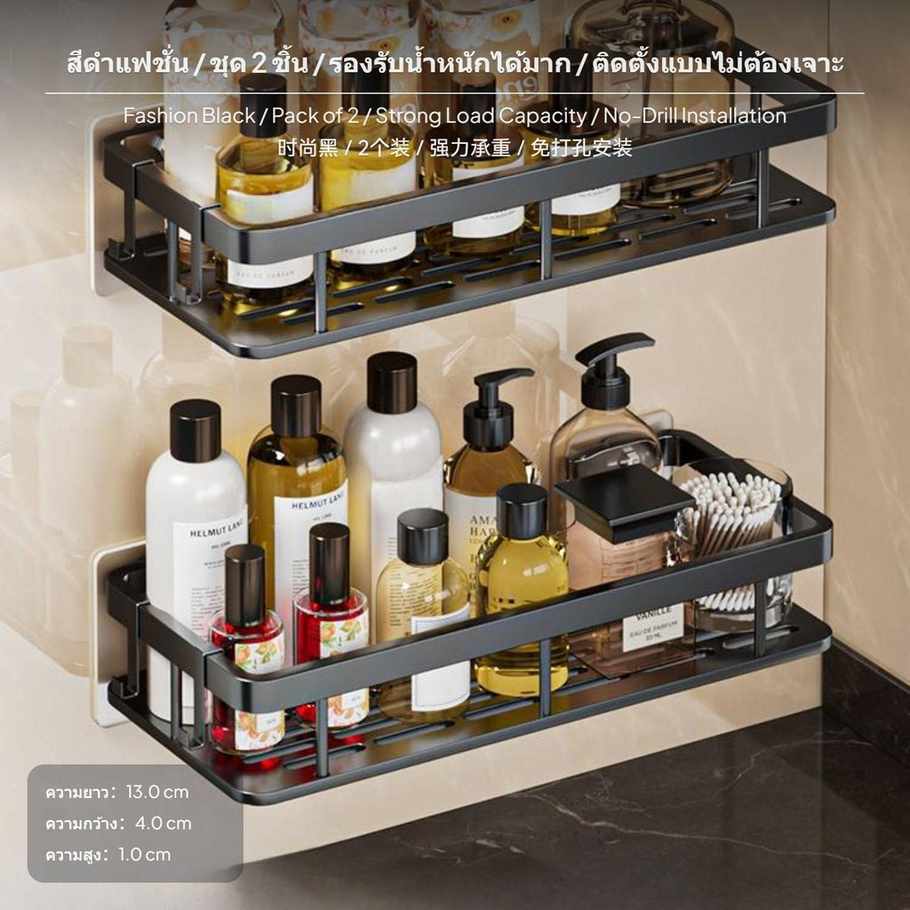 2-Pack Bathroom Shelf, Wall Mounted No-Drill Storage Rack, ABS, Black/ivory/Gray Black 2 Pack